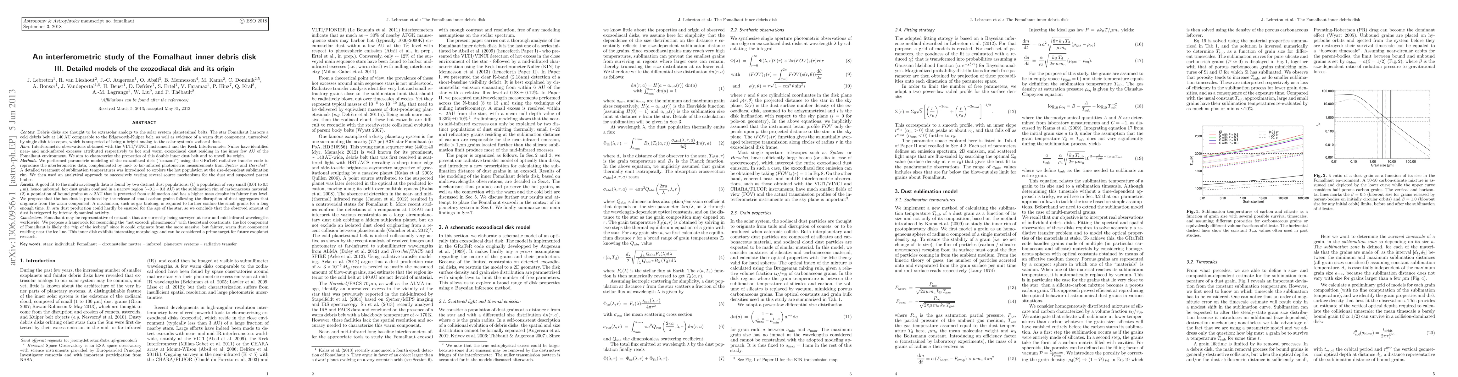 This study uses interferometric observations to model the exozodiacal disk around Fomalhaut, identifying two distinct dust populations: hot, unbound grains near the sublimation rim and bound grains at 2 AU. The hot dust is likely produced by the disruption of aggregates from the warm component, suggesting intense dynamical activity is necessary to maintain the observed dust levels.