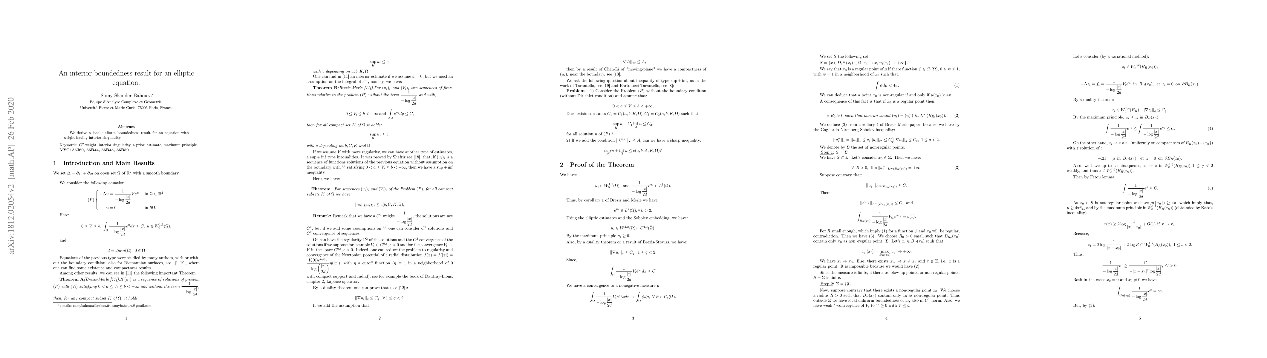 Researchers derive a local uniform boundedness result for an elliptic equation with interior singularity, providing insight into the behavior of such equations.