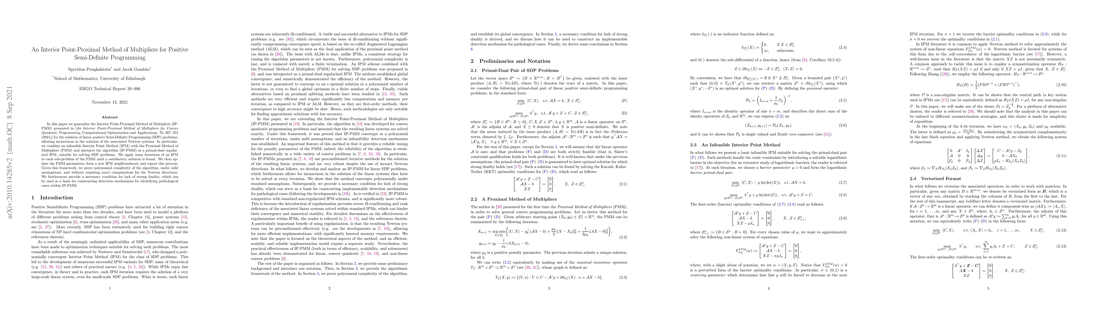 This paper generalizes the Interior Point-Proximal Method of Multipliers (IP-PMM) for solving linear positive semi-definite programming (SDP) problems, allowing for inexact Newton system solutions. The IP-PMM combines an infeasible Interior Point Method with the Proximal Method of Multipliers, proving polynomial complexity and providing a condition for detecting lack of strong duality.