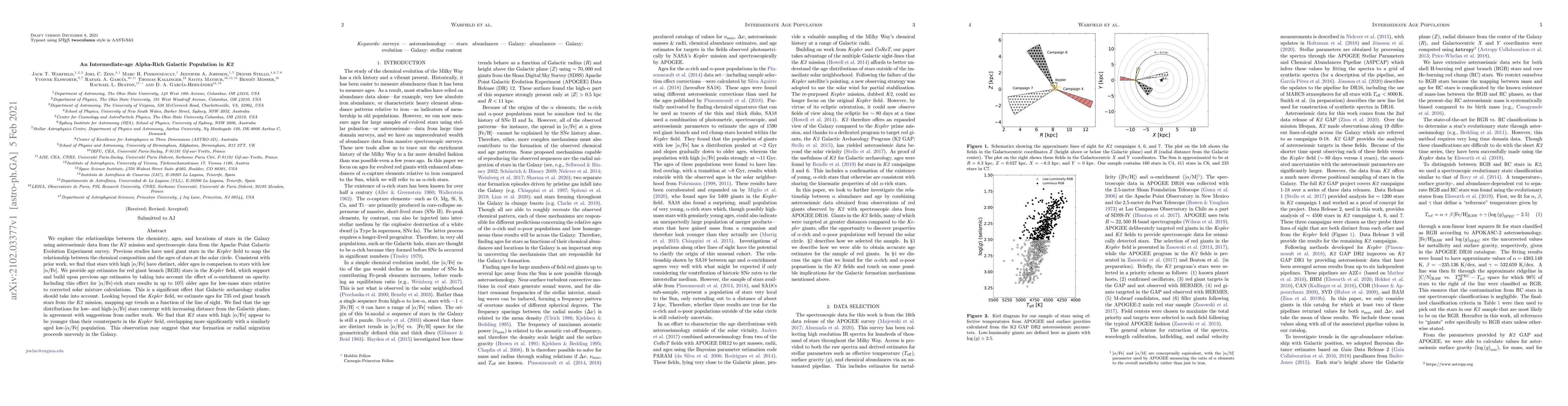 A study using asteroseismic and spectroscopic data from K2 and Apache Point surveys reveals an intermediate-age alpha-rich population in the Galaxy, with high-alpha stars appearing younger than expected.