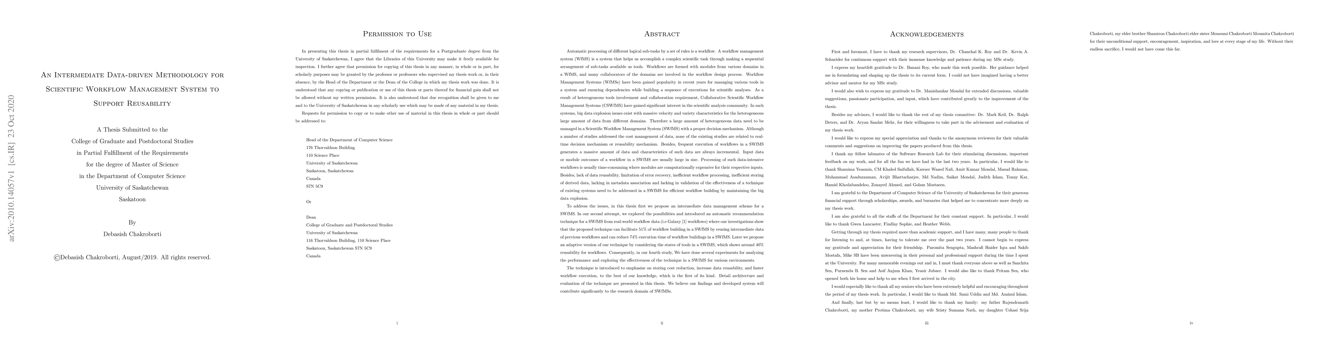 This paper proposes a data-driven methodology for scientific workflow management systems (SWfMS) to enhance reusability, reduce storage costs, and speed up workflow execution. The technique shows a 51% reduction in workflow building time and a 74% decrease in execution time by reusing intermediate data, and an adaptive version demonstrates about 40% reusability for workflows.