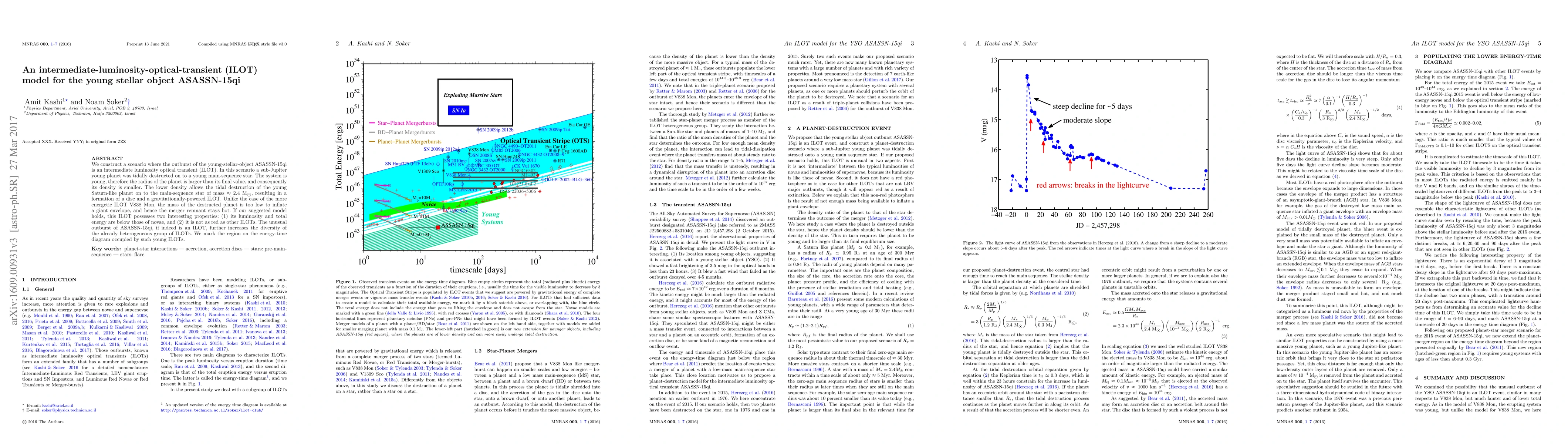 A research paper proposes a model for an intermediate-luminosity optical transient (ILOT) in a young stellar object, suggesting that a planet's tidal destruction onto a main-sequence star could explain the outburst.