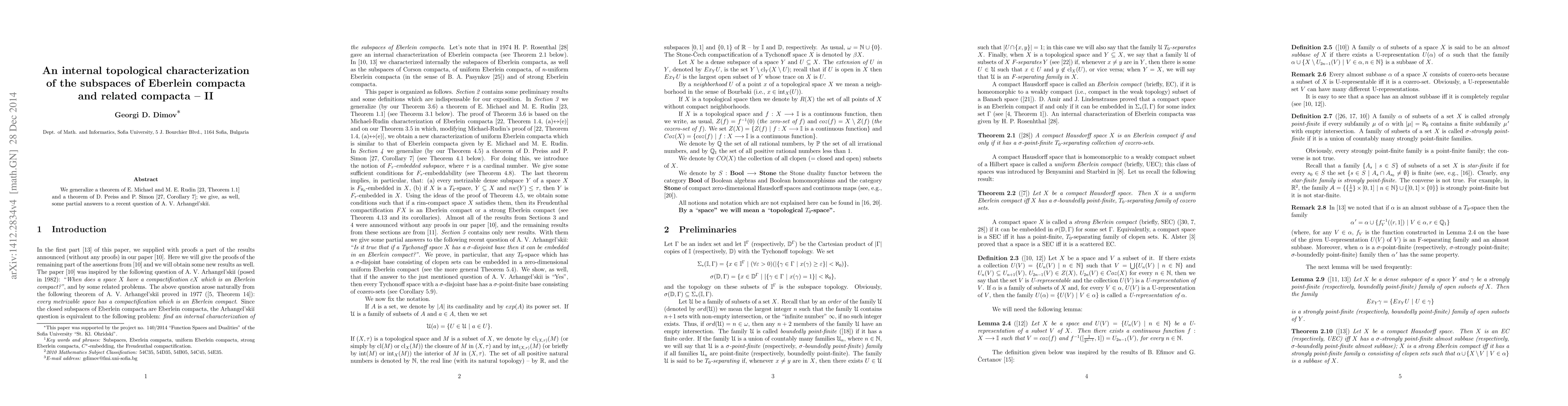 We generalize a theorem of E. Michael and M. E. Rudin and a theorem of D. Preiss and P. Simon; we give, as well, some partial answers to a recent question of A. V. Arhangel'ski\v{\i}.