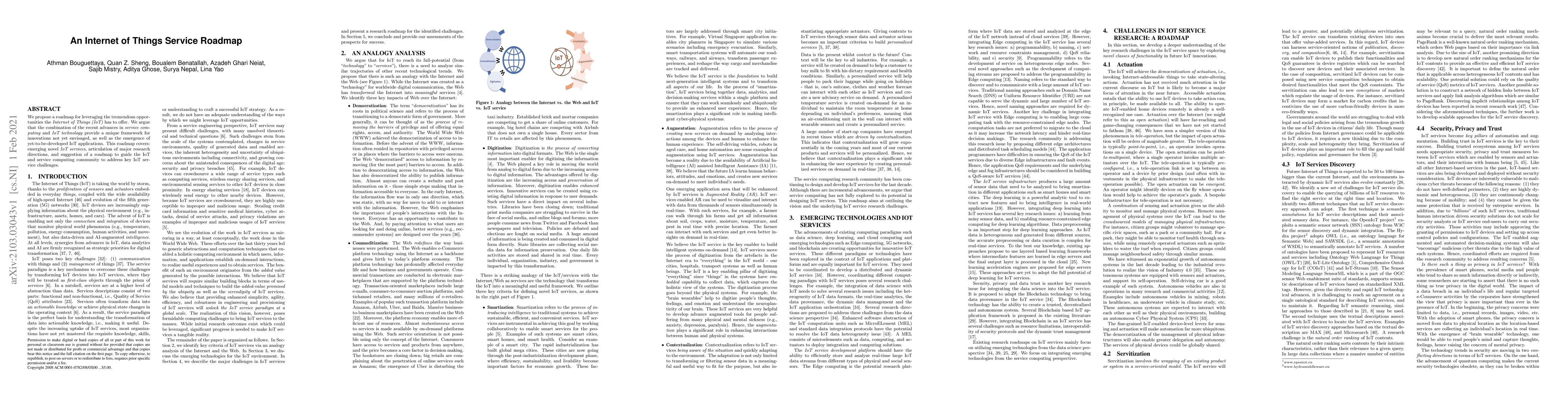 This paper proposes a comprehensive roadmap for harnessing IoT opportunities through advances in service computing, outlining emerging IoT services, major research directions, and a guide for addressing IoT service challenges.