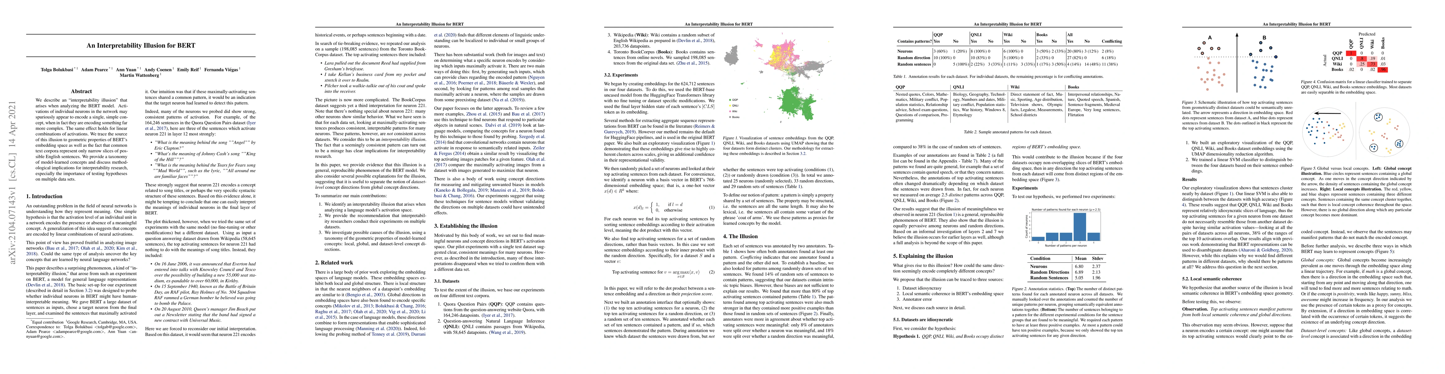 Researchers found that BERT models can create an 'interpretability illusion' where simple neuron activations appear to encode a single concept, but actually represent complex patterns in the data. This effect can be attributed to the model's embedding space and limited representation of English sentences.