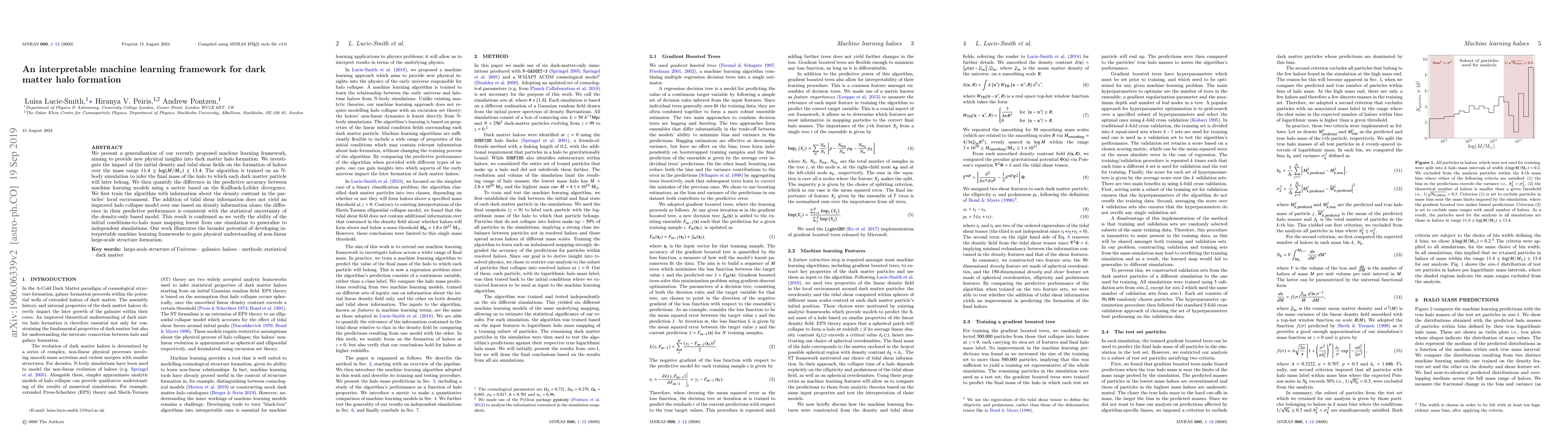 We present a generalization of our recently proposed machine learning framework, aiming to provide new physical insights into dark matter halo formation. We investigate the impact of the initial density and tidal shear fields on the formation of haloes over the mass range $11.4 \leq \log(M/M_{\odot}) \leq 13.4$. The algorithm is trained on an N-body simulation to infer the final mass of the halo to which each dark matter particle will later belong. We then quantify the difference in the predictive accuracy between machine learning models using a metric based on the Kullback-Leibler divergence. We first train the algorithm with information about the density contrast in the particles' local environment. The addition of tidal shear information does not yield an improved halo collapse model over one based on density information alone; the difference in their predictive performance is consistent with the statistical uncertainty of the density-only based model. This implies that our machine learning setup does not identify any significant role for the tidal shear in determining halo masses. This result is confirmed as we verify the ability of the initial conditions-to-halo mass mapping learnt from one simulation to generalize to independent simulations. Our work illustrates the broader potential of developing interpretable machine learning frameworks to gain physical understanding of non-linear large-scale structure formation.