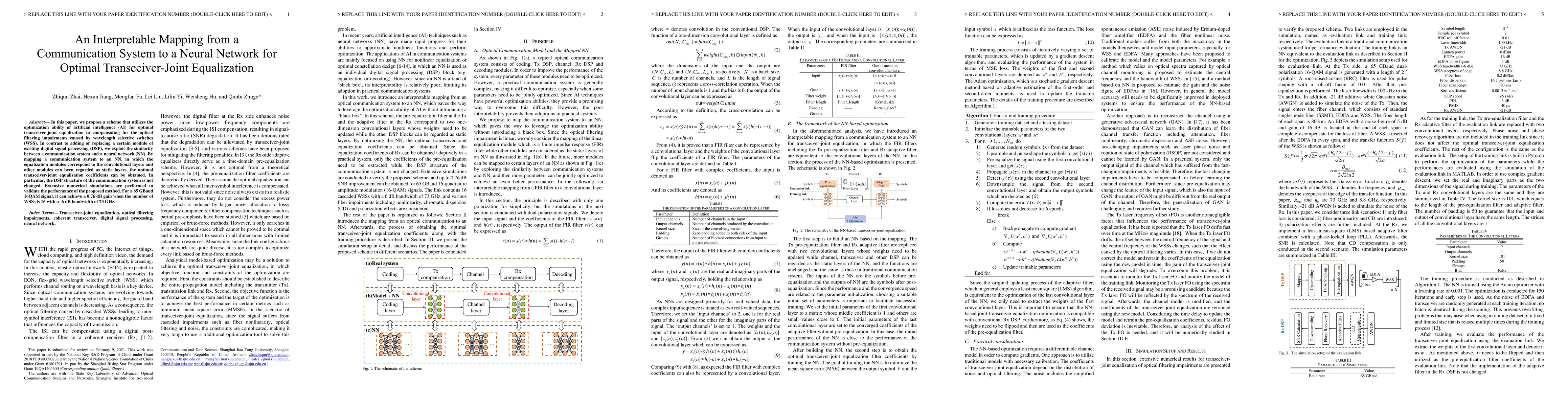 This paper proposes a method using AI to optimize transceiver-joint equalization in optical communication systems by mapping the system to a neural network, achieving a 0.76 dB gain for a 65 GBaud 16QAM signal with 16 wavelength selective switches. The approach maintains the original DSP structure without modifications.
