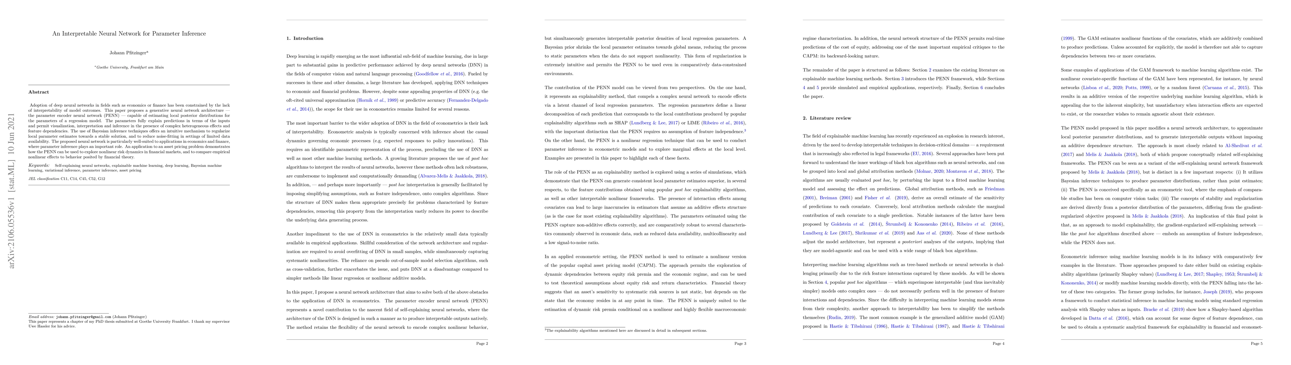 Adoption of deep neural networks in fields such as economics or finance has been constrained by the lack of interpretability of model outcomes. This paper proposes a generative neural network architecture - the parameter encoder neural network (PENN) - capable of estimating local posterior distributions for the parameters of a regression model. The parameters fully explain predictions in terms of the inputs and permit visualization, interpretation and inference in the presence of complex heterogeneous effects and feature dependencies. The use of Bayesian inference techniques offers an intuitive mechanism to regularize local parameter estimates towards a stable solution, and to reduce noise-fitting in settings of limited data availability. The proposed neural network is particularly well-suited to applications in economics and finance, where parameter inference plays an important role. An application to an asset pricing problem demonstrates how the PENN can be used to explore nonlinear risk dynamics in financial markets, and to compare empirical nonlinear effects to behavior posited by financial theory.