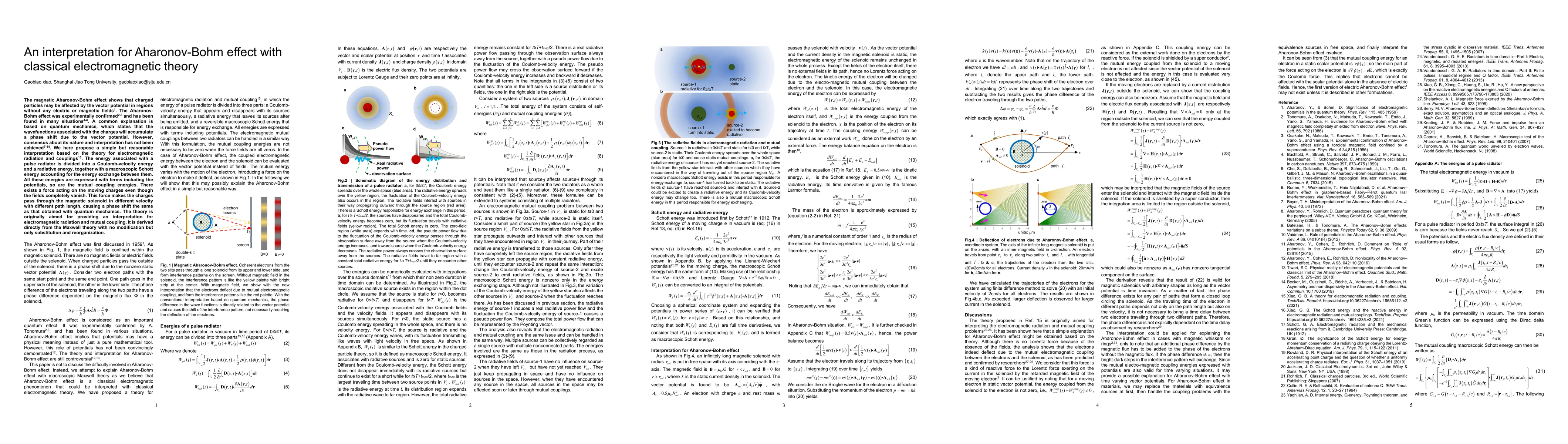 This research paper proposes a classical electromagnetic theory interpretation for the Aharonov-Bohm effect, suggesting that charged particles experience a force due to magnetic fields even when there's no electric or magnetic field present.