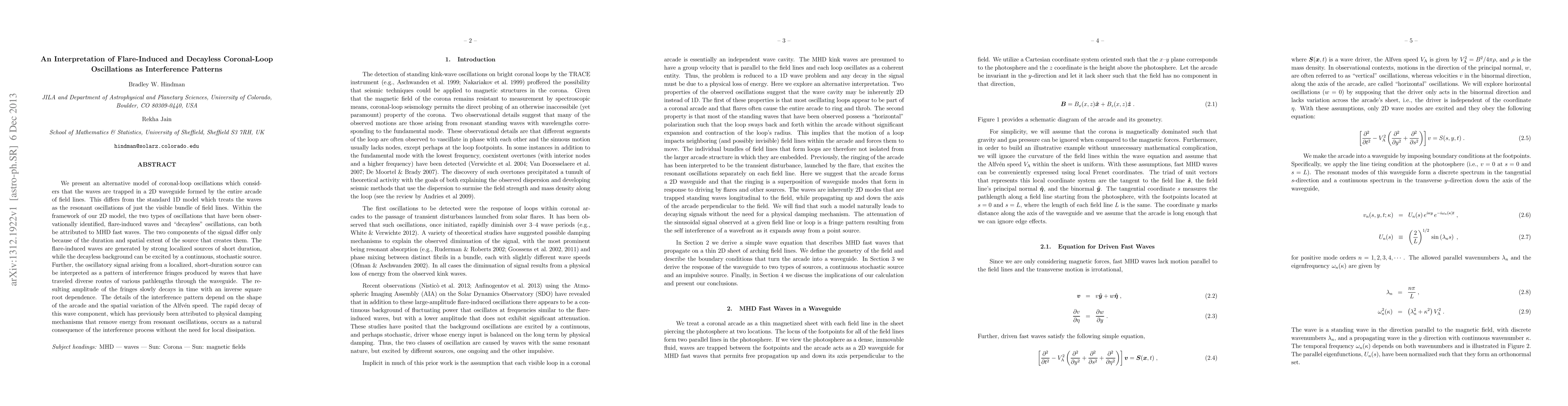We present an alternative model of coronal-loop oscillations which considers that the waves are trapped in a 2D waveguide formed by the entire arcade of field lines. This differs from the standard 1D model which treats the waves as the resonant oscillations of just the visible bundle of field lines. Within the framework of our 2D model, the two types of oscillations that have been observationally identified, flare-induced waves and "decayless" oscillations, can both be attributed to MHD fast waves. The two components of the signal differ only because of the duration and spatial extent of the source that creates them. The flare-induced waves are generated by strong localized sources of short duration, while the decayless background can be excited by a continuous, stochastic source. Further, the oscillatory signal arising from a localized, short-duration source can be interpreted as a pattern of interference fringes produced by waves that have traveled diverse routes of various pathlengths through the waveguide. The resulting amplitude of the fringes slowly decays in time with an inverse square root dependence. The details of the interference pattern depend on the shape of the arcade and the spatial variation of the Alfv\'en speed. The rapid decay of this wave component, which has previously been attributed to physical damping mechanisms that remove energy from resonant oscillations, occurs as a natural consequence of the interference process without the need for local dissipation.