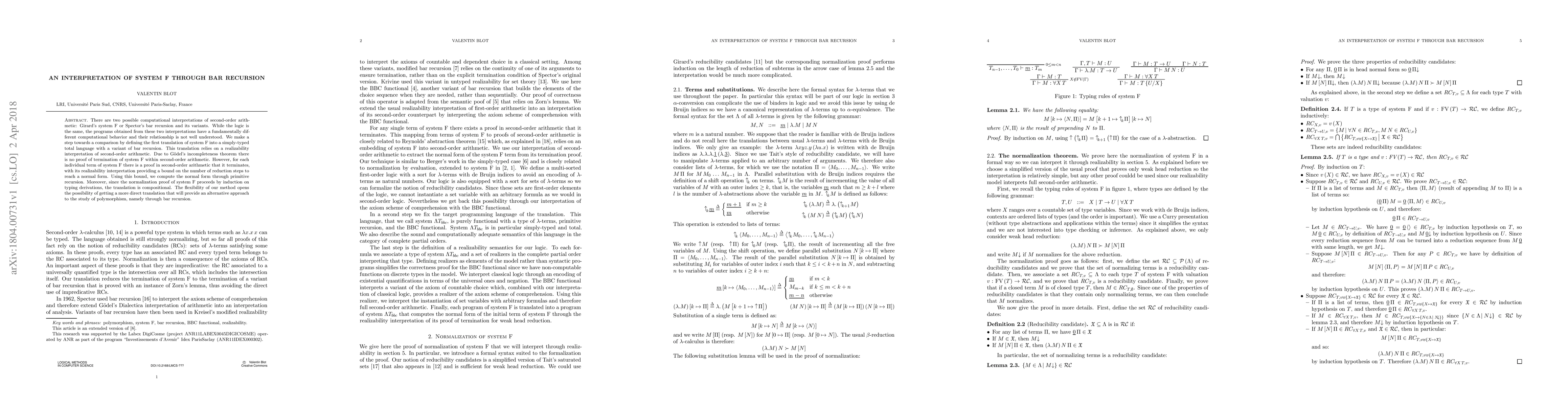 This paper translates system F into a simply-typed total language using bar recursion, leveraging realizability to prove termination for individual terms. The translation is compositional and opens avenues for studying polymorphism via bar recursion.