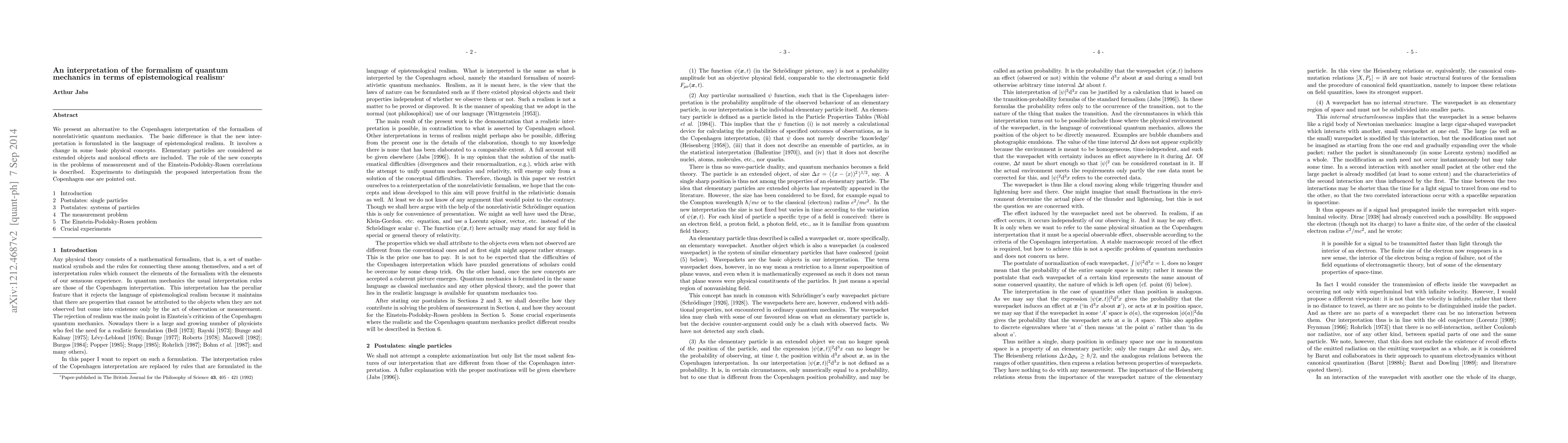 This paper proposes an alternative interpretation of quantum mechanics based on epistemological realism, treating elementary particles as extended objects and incorporating nonlocal effects, and discusses its implications for measurement and EPR correlations, with suggested experiments to differentiate it from the Copenhagen interpretation.