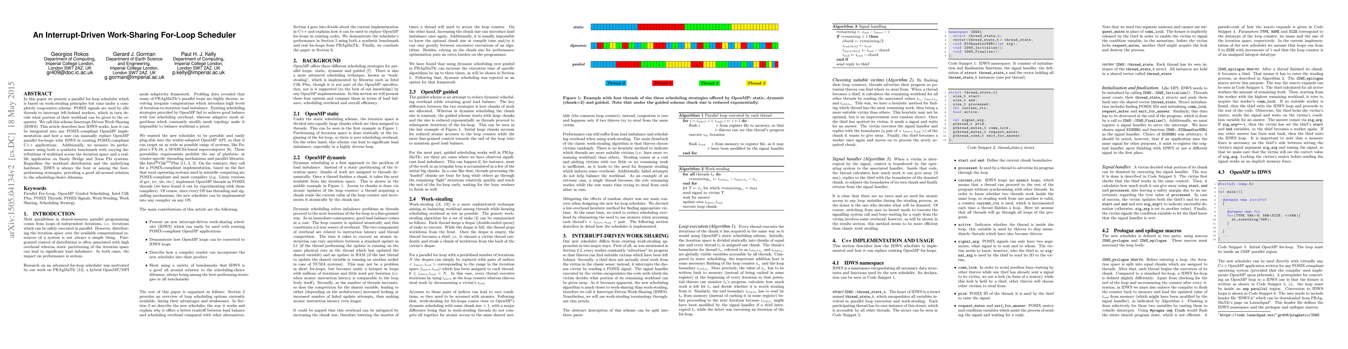 This paper introduces Interrupt-Driven Work-Sharing (IDWS), a cooperative parallel for-loop scheduler based on work-stealing principles, using POSIX signals to enable idle threads to request workload from active workers. IDWS outperforms or matches other strategies across various workloads and hardware, offering a versatile solution for parallel scheduling.