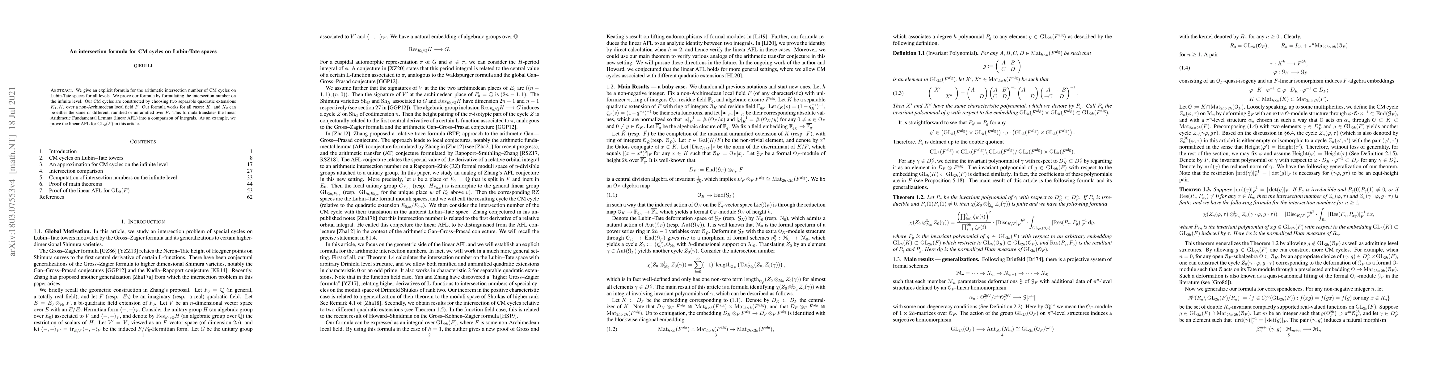 This paper provides an explicit formula for the arithmetic intersection number of CM cycles on Lubin-Tate spaces at all levels, applicable for various combinations of separable quadratic extensions of non-Archimedean local fields. The formula generalizes to both same and different extensions, and covers both ramified and unramified cases, facilitating applications like translating the linear Arithmetic Fundamental Lemma into integral comparisons and recovering Gross and Keating's results on lifting endomorphisms of formal modules.