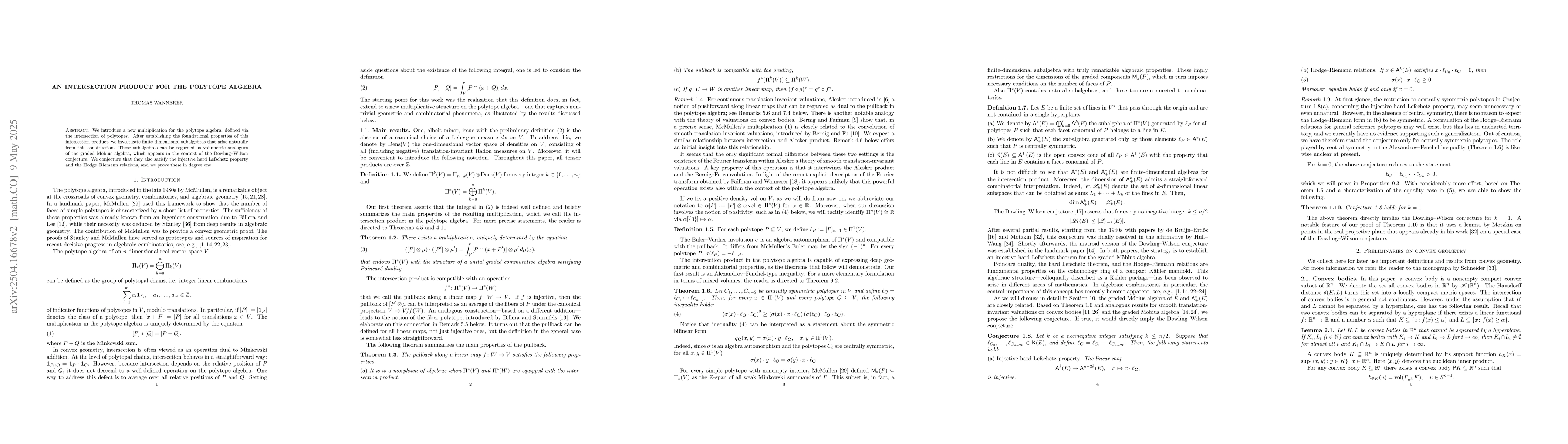 The introduction of a novel intersection product for the polytope algebra based on polytope intersection, along with the identification of volumetric subalgebras.