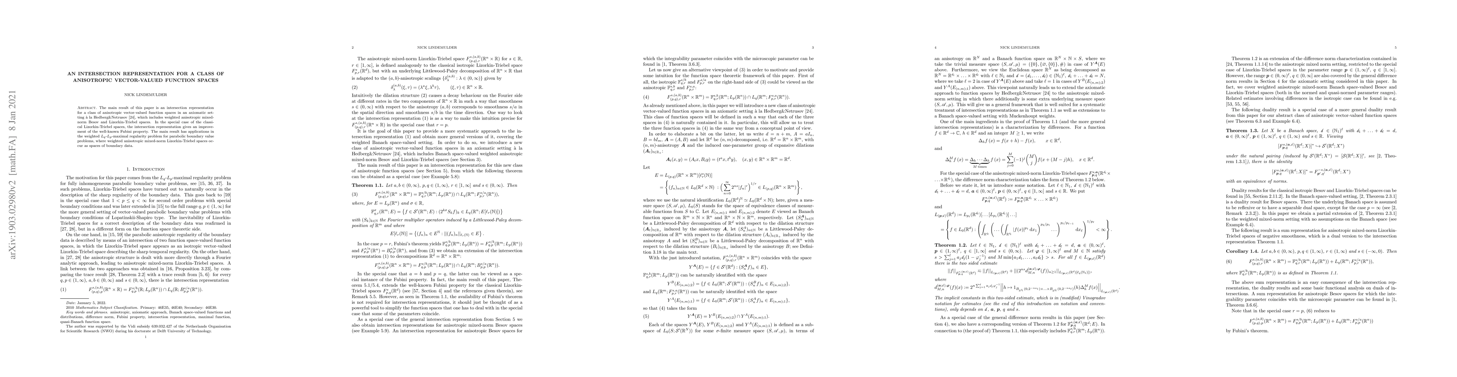 This paper provides an intersection representation for anisotropic vector-valued function spaces, including weighted anisotropic mixed-norm Besov and Lizorkin-Triebel spaces, improving the Fubini property for classical Lizorkin-Triebel spaces. The results have applications in solving parabolic boundary value problems through weighted $L_{q}$-$L_{p}$-maximal regularity.