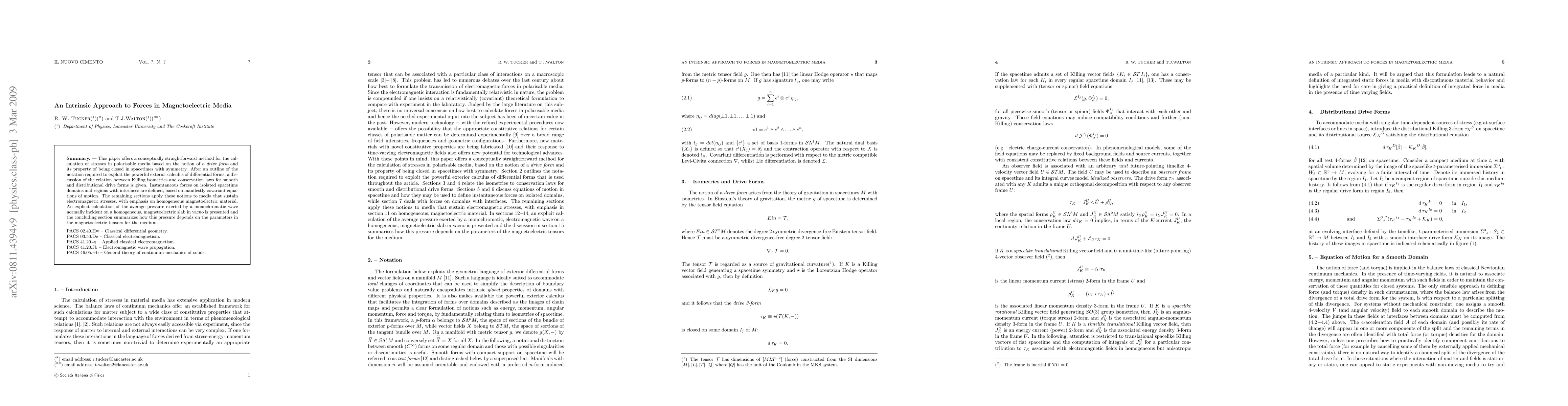 This paper offers a conceptually straightforward method for the calculation of stresses in polarisable media based on the notion of a drive form and its property of being closed in spacetimes with symmetry. After an outline of the notation required to exploit the powerful exterior calculus of differential forms, a discussion of the relation between Killing isometries and conservation laws for smooth and distributional drive forms is given. Instantaneous forces on isolated spacetime domains and regions with interfaces are defined, based on manifestly covariant equations of motion. The remaining sections apply these notions to media that sustain electromagnetic stresses, with emphasis on homogeneous magnetoelectric material. An explicit calculation of the average pressure exerted by a monochromatic wave normally incident on a homogeneous, magnetoelectric slab in vacuo is presented and the concluding section summarizes how this pressure depends on the parameters in the magnetoelectric tensors for the medium.