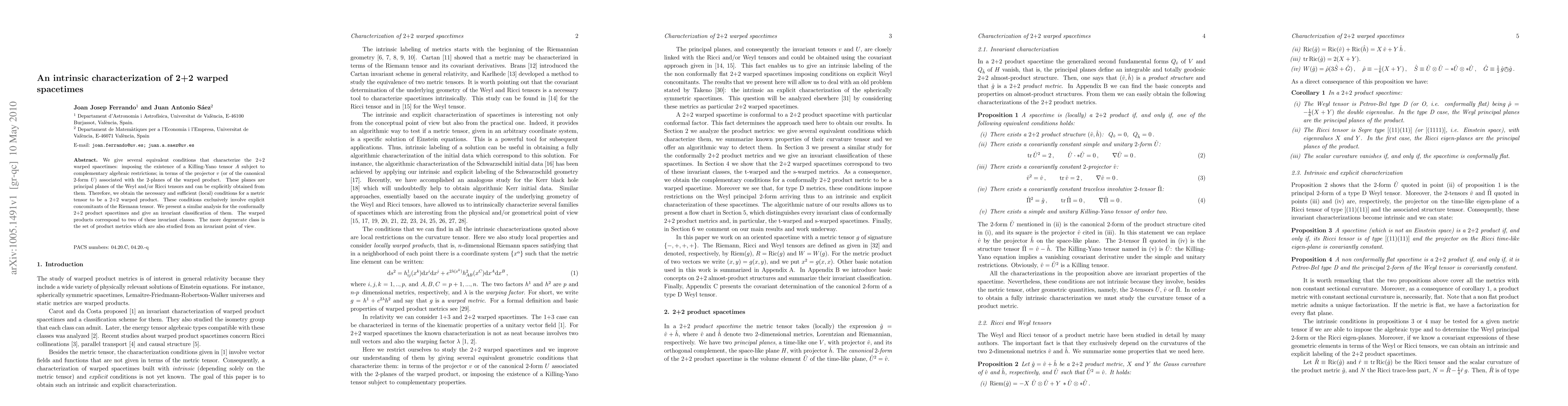 This paper provides intrinsic conditions characterizing 2+2 warped spacetimes through Killing-Yano tensors and associated projectors, and identifies necessary and sufficient local conditions for a metric tensor to be a 2+2 warped product. It also classifies conformally 2+2 product spacetimes and distinguishes warped products from more degenerate product metrics.