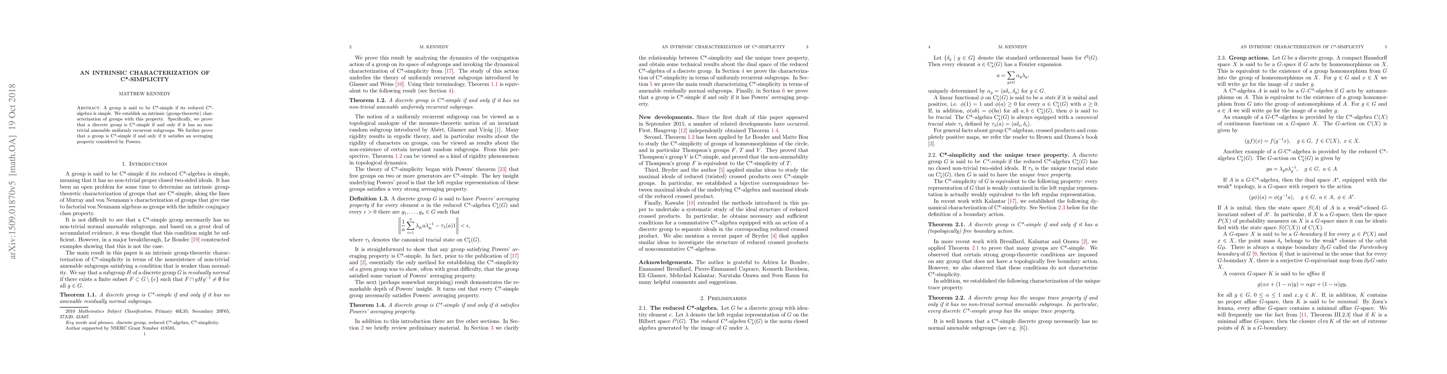 A group is said to be C*-simple if its reduced C*-algebra is simple. We establish an intrinsic (group-theoretic) characterization of groups with this property. Specifically, we prove that a discrete group is C*-simple if and only if it has no non-trivial amenable uniformly recurrent subgroups. We further prove that a group is C*-simple if and only if it satisfies an averaging property considered by Powers.