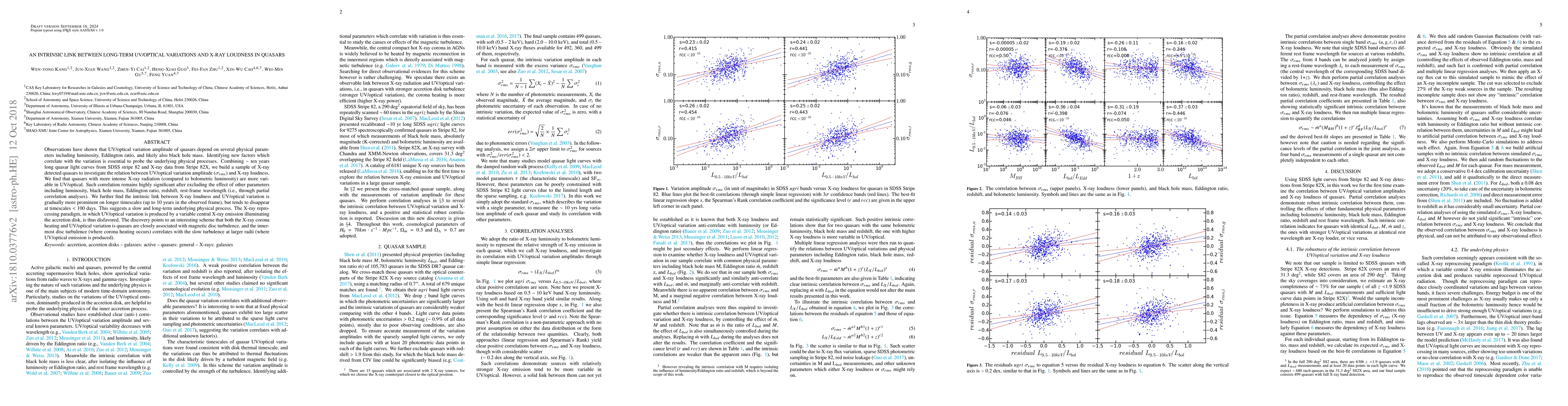 This study finds a significant correlation between the X-ray loudness and UV/optical variation amplitude in quasars, suggesting a long-term intrinsic link. The correlation persists over timescales up to 10 years, indicating a slow physical process, and is not explained by X-ray reprocessing, pointing instead to a connection with magnetic disc turbulence.