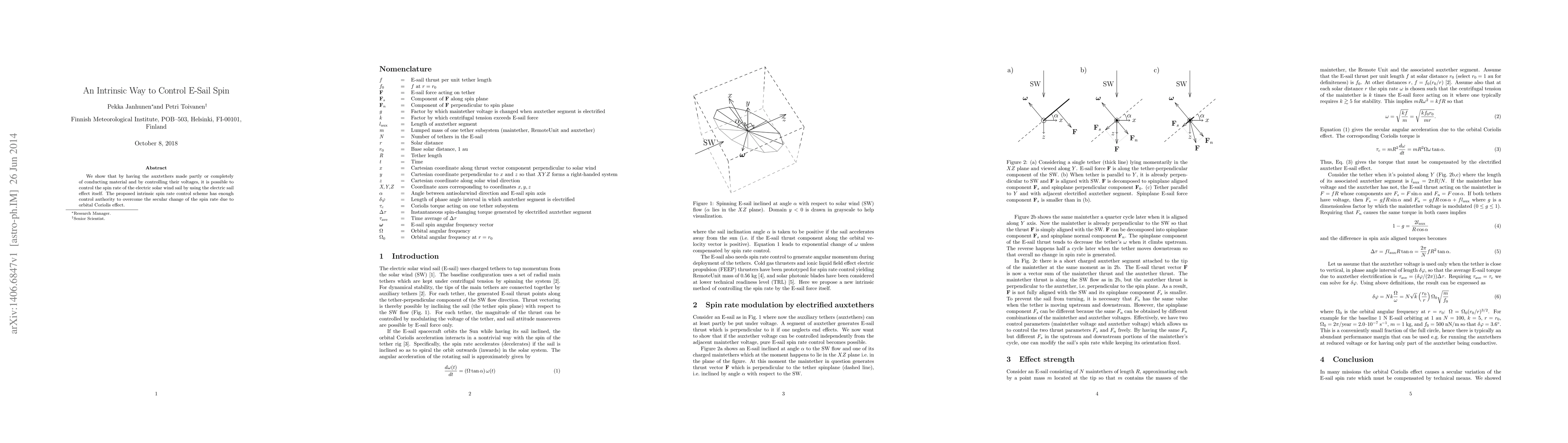 This paper proposes a method to control the spin rate of an electric solar wind sail by utilizing conducting auxtethers and voltage control, leveraging the electric sail effect itself. This intrinsic control scheme effectively counters the spin rate changes caused by the orbital Coriolis effect.