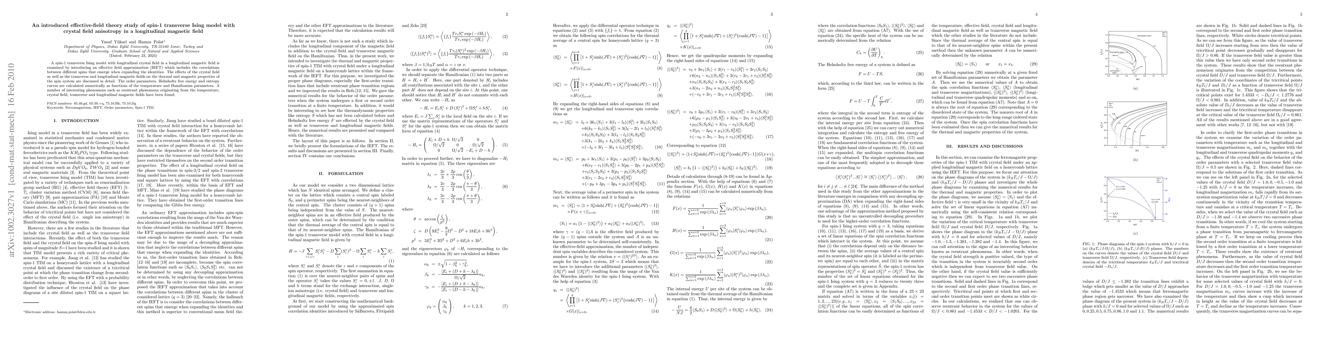 This paper employs an effective-field theory to study the spin-1 transverse Ising model under the influence of crystal field anisotropy and longitudinal magnetic fields, revealing complex thermal and magnetic behaviors, including reentrant phenomena. Numerical calculations detail order parameters, free energy, and entropy as functions of temperature and Hamiltonian parameters.