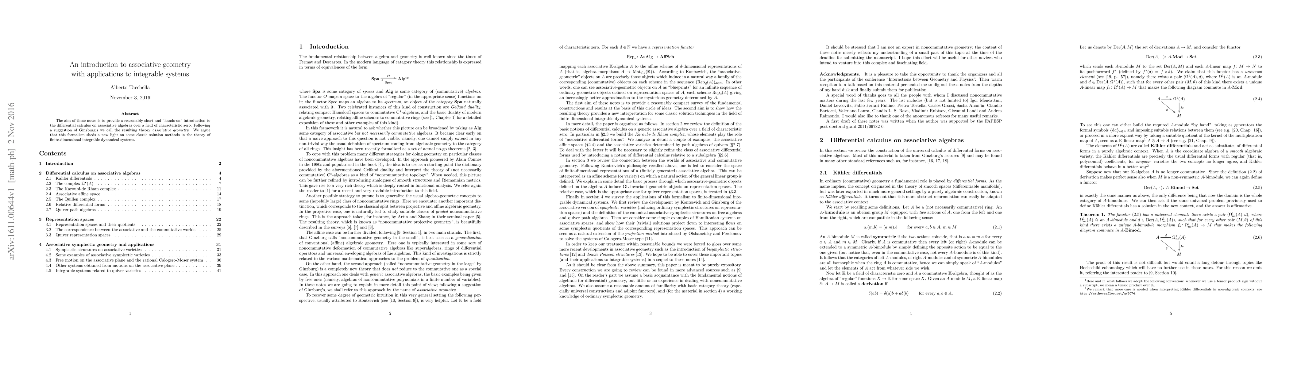 This paper introduces associative geometry, a differential calculus on associative algebras, providing a "hands-on" approach and demonstrating its utility in reinterpreting classic methods for solving finite-dimensional integrable dynamical systems.