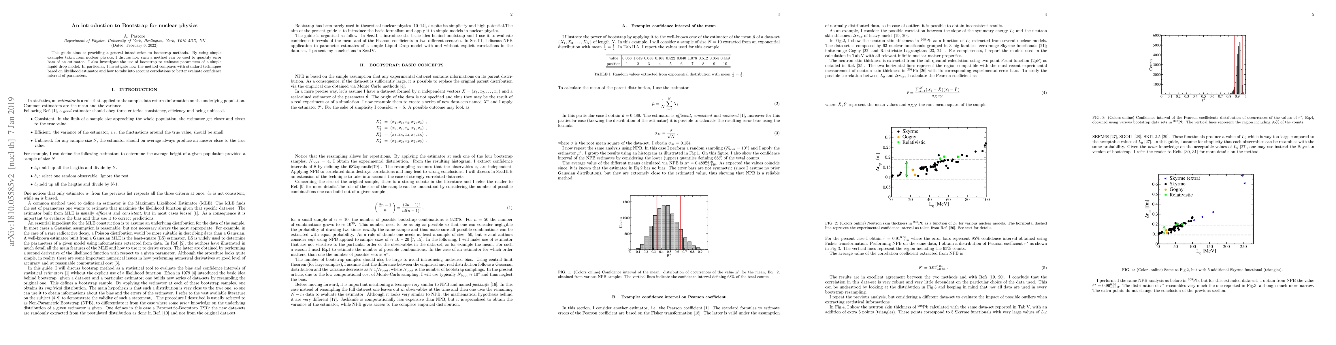 This guide aims at providing a general introduction to bootstrap methods. By using simple examples taken from nuclear physics, I discuss how such a method can be used to quantify error bars of an estimator. I also investigate the use of bootstrap to estimate parameters of a simple liquid drop model. In particular, I investigate how the method compares with standard techniques based on likelihood estimator and how to take into account correlations to better evaluate confidence interval of parameters.
