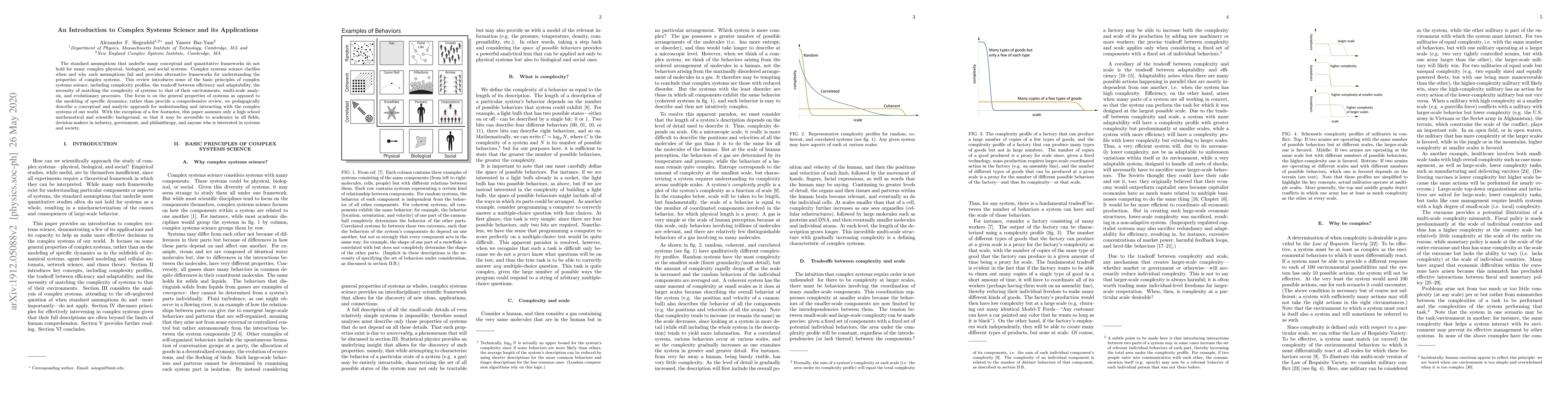 The standard assumptions that underlie many conceptual and quantitative frameworks do not hold for many complex physical, biological, and social systems. Complex systems science clarifies when and why such assumptions fail and provides alternative frameworks for understanding the properties of complex systems. This review introduces some of the basic principles of complex systems science, including complexity profiles, the tradeoff between efficiency and adaptability, the necessity of matching the complexity of systems to that of their environments, multi-scale analysis, and evolutionary processes. Our focus is on the general properties of systems as opposed to the modeling of specific dynamics; rather than provide a comprehensive review, we pedagogically describe a conceptual and analytic approach for understanding and interacting with the complex systems of our world. With the exception of a few footnotes, this paper assumes only a high school mathematical and scientific background, so that it may be accessible to academics in all fields, decision-makers in industry, government, and philanthropy, and anyone who is interested in systems and society.