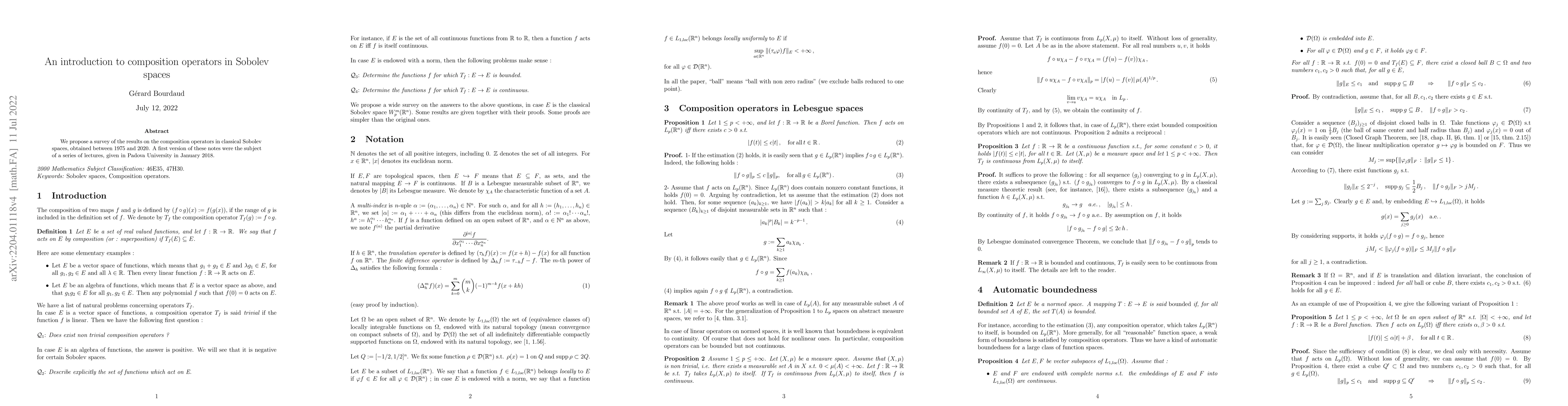 Summary: This paper surveys composition operators in classical Sobolev spaces, highlighting recent findings from 2019 regarding the continuity of these operators. The focus is on advancing understanding of operator behavior within these mathematical frameworks.
