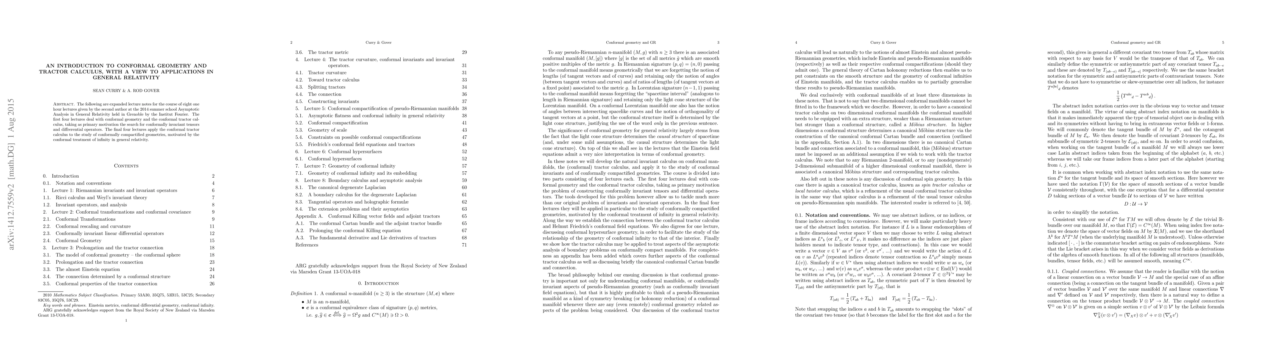This paper introduces conformal geometry and tractor calculus, focusing on their applications in general relativity. The first part develops conformal geometry and the conformal tractor calculus, while the latter part applies these concepts to study conformally compactified geometries relevant to treating infinity in general relativity.