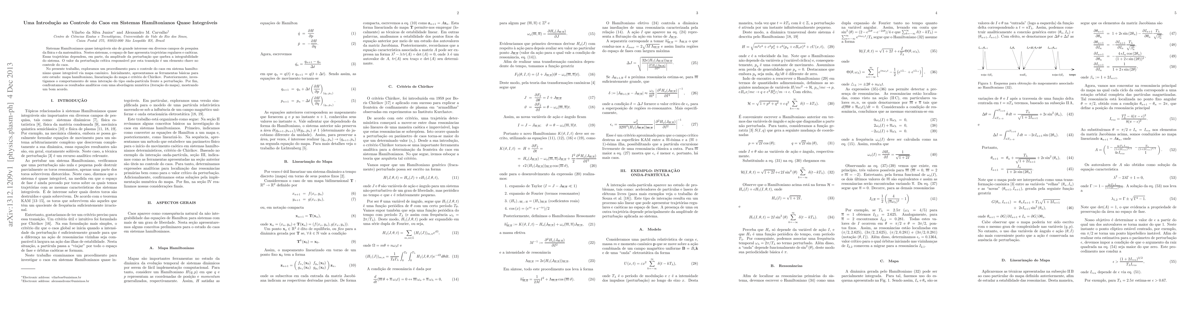 Quasi-integrable Hamiltonian systems are of great interest in many research fields of physics and mathematics. In these systems, the phase space has regular and chaotic trajectories. These trajectories depend in part on the magnitude of perturbation that breaks the integrability of the system. The value of the critical perturbation responsible for this transition is a key element in the control of chaos . In this paper, we explore a procedure for the control in quasi-integrable Hamiltonian systems via canonical map. Initially, we present the basic tools for this study: Hamiltonian map, linearization of the map and Chirikov criterion. Subsequently, we investigated the behavior of a wave-particle interaction front perturbation. Finally, we confront with a numerical analytical approach (iteration of the map) results, showing a good agreement.