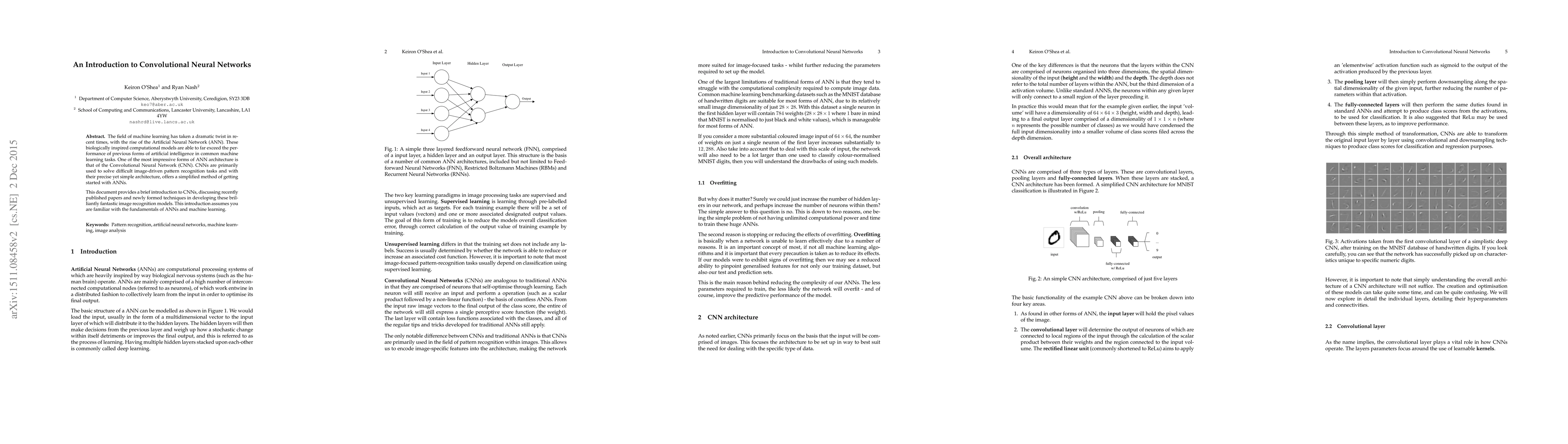 This paper introduces Convolutional Neural Networks (CNNs), a powerful form of Artificial Neural Networks excelling in image-driven pattern recognition. It reviews recent advancements and techniques in CNN development, assuming prior knowledge of Artificial Neural Networks and machine learning fundamentals.
