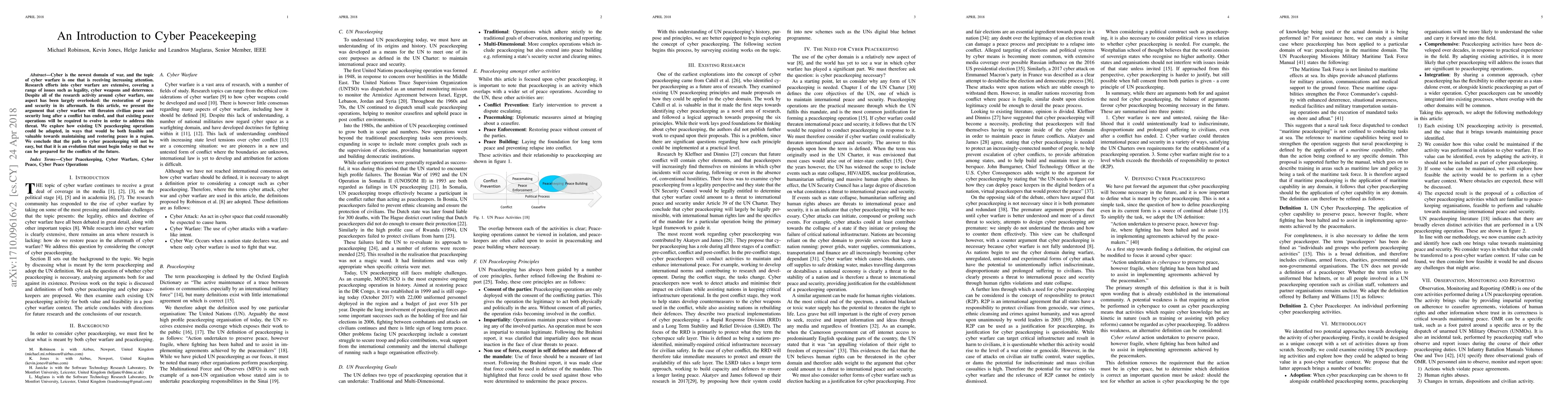 This paper introduces the concept of cyber peacekeeping as a crucial activity to restore and maintain peace in the aftermath of cyber warfare. It explores the need for cyber peacekeeping, its potential challenges, and suggestions for future research.