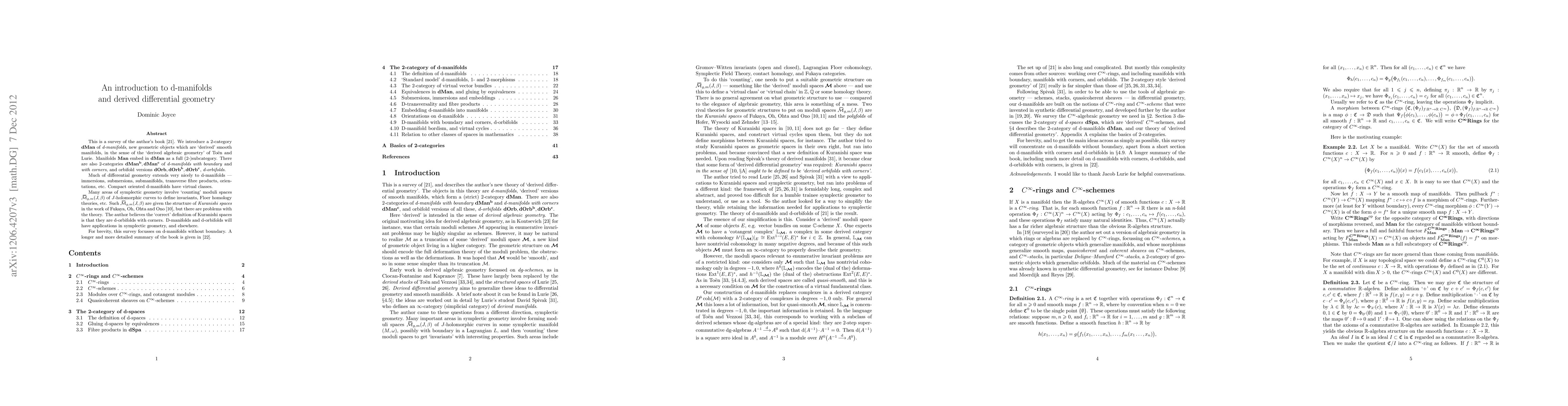 This paper surveys a book introducing "d-manifolds," derived smooth manifolds from derived algebraic geometry, and their extensions to "d-orbifolds." The paper discusses how d-manifolds naturally incorporate many concepts of differential geometry and their relevance to moduli spaces in various fields like symplectic and algebraic geometry.
