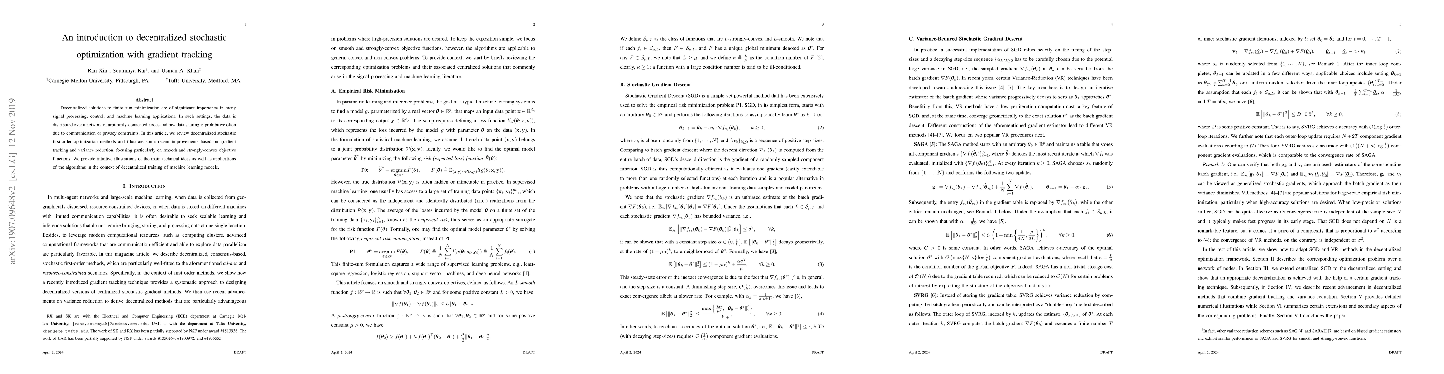 This paper reviews decentralized stochastic first-order optimization methods, emphasizing recent advancements using gradient tracking and variance reduction for smooth and strongly-convex objectives. It illustrates these techniques and their applications in decentralized machine learning model training.