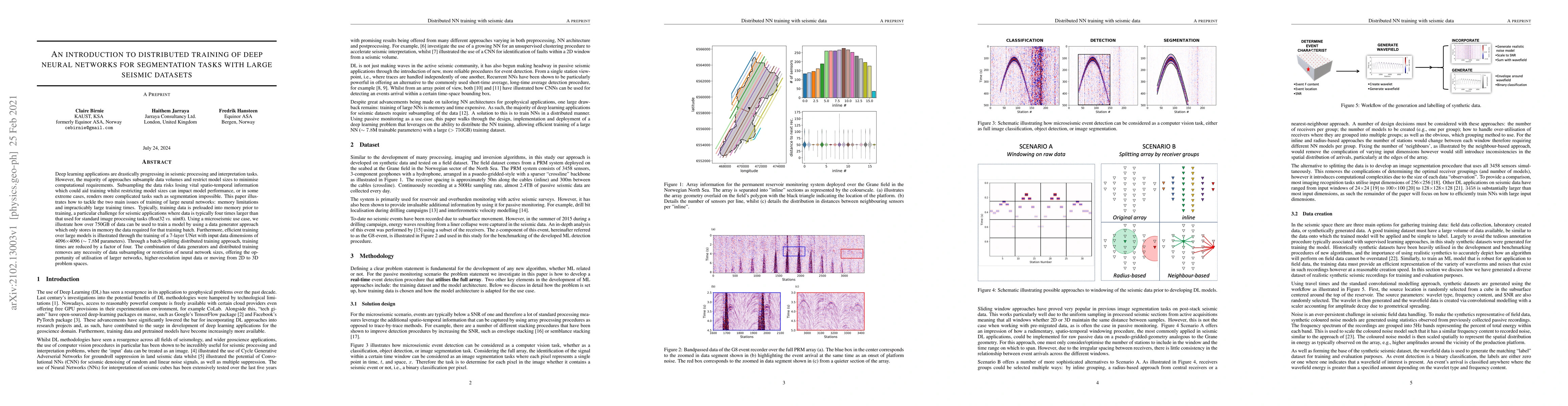 This paper explores distributed training techniques for deep neural networks to handle large seismic datasets in segmentation tasks, addressing memory limitations and long training times. It demonstrates a data generator approach to manage large datasets and a distributed training method to train large models efficiently, enabling the use of higher-resolution data without data subsampling.