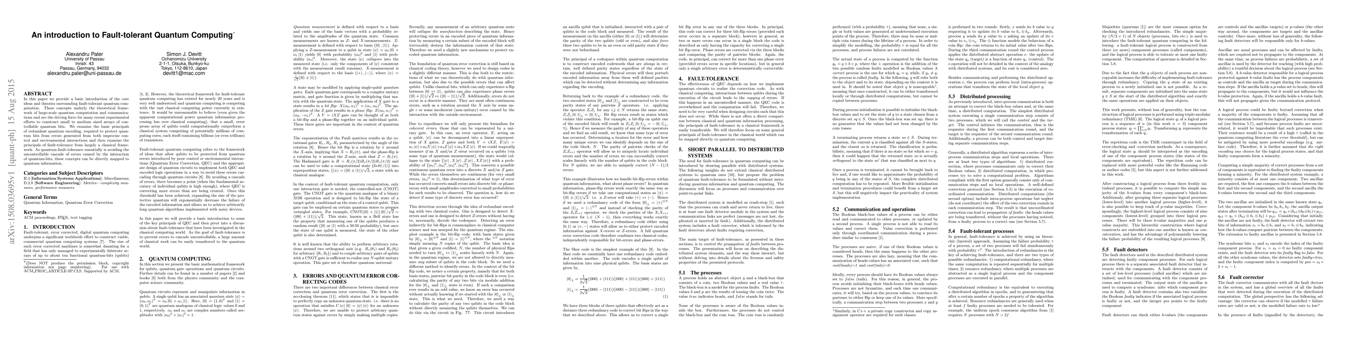 This paper introduces fundamental concepts for fault-tolerant quantum computing, exploring principles of redundant encoding to protect quantum bits from errors and classical frameworks for achieving fault-tolerance. The research aims to understand and apply these concepts to enable large-scale reliable quantum computation.