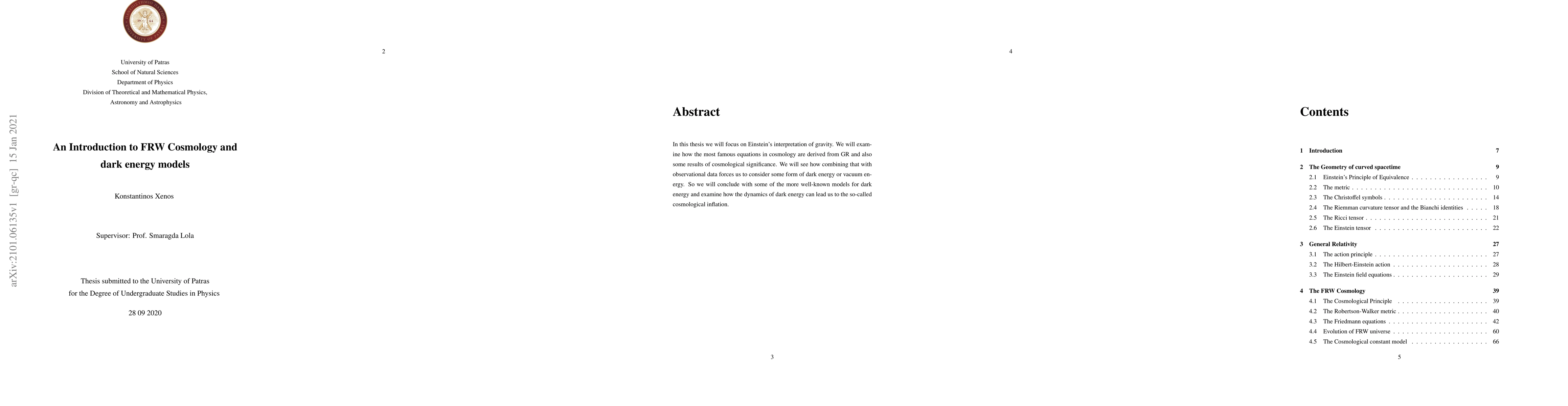 In this thesis we will focus on Einstein's interpretation of gravity. We will examine how the most famous equations in cosmology are derived from GR and also some results of cosmological significance. We will see how combining that with observational data forces us to consider some form of dark energy or vacuum energy. So we will conclude with some of the more well-known models for dark energy and examine how the dynamics of dark energy can lead us to the so-called cosmological inflation.