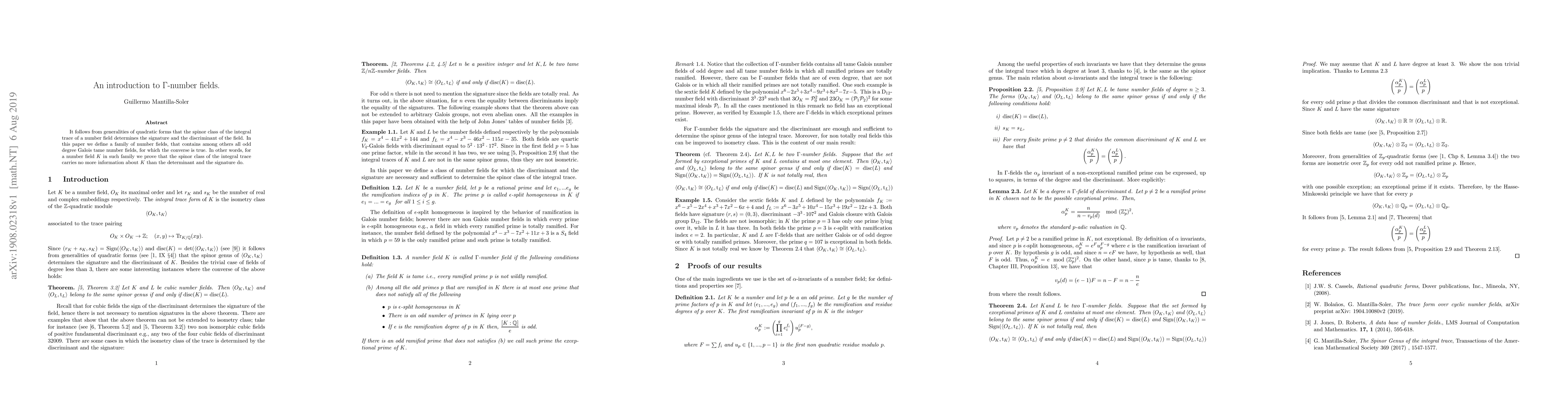 It follows from generalities of quadratic forms that the spinor class of the integral trace of a number field determines the signature and the discriminant of the field. In this paper we define a family of number fields, that contains among others all odd degree Galois tame number fields, for which the converse is true. In other words, for a number field $K$ in such family we prove that the spinor class of the integral trace carries no more information about $K$ than the determinant and the signature do.