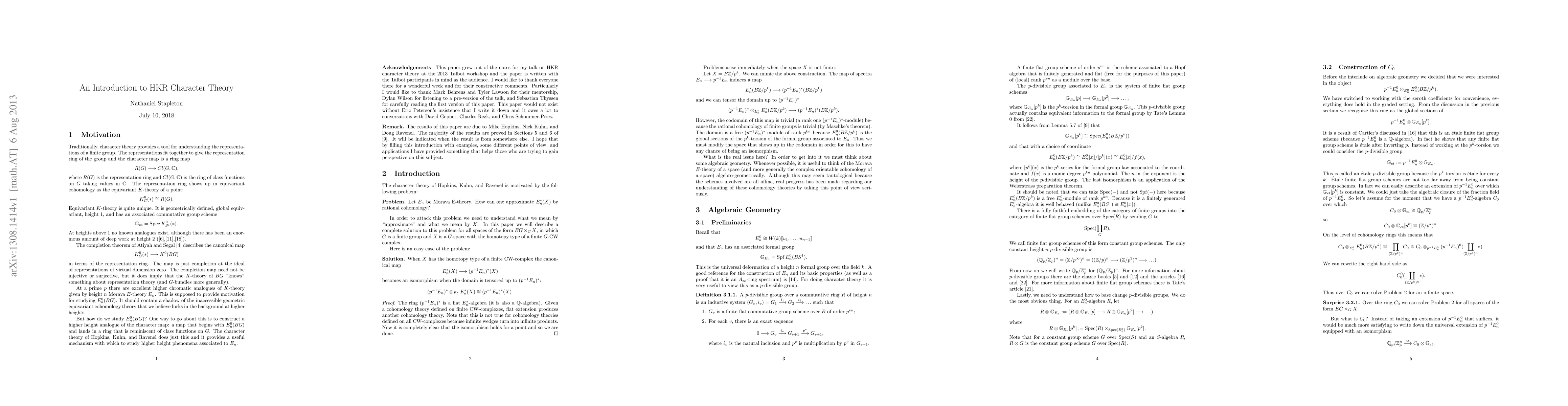 It aims to provide an overview of the key findings, methodology, and implications of HKR character theory in the context of higher category theory.