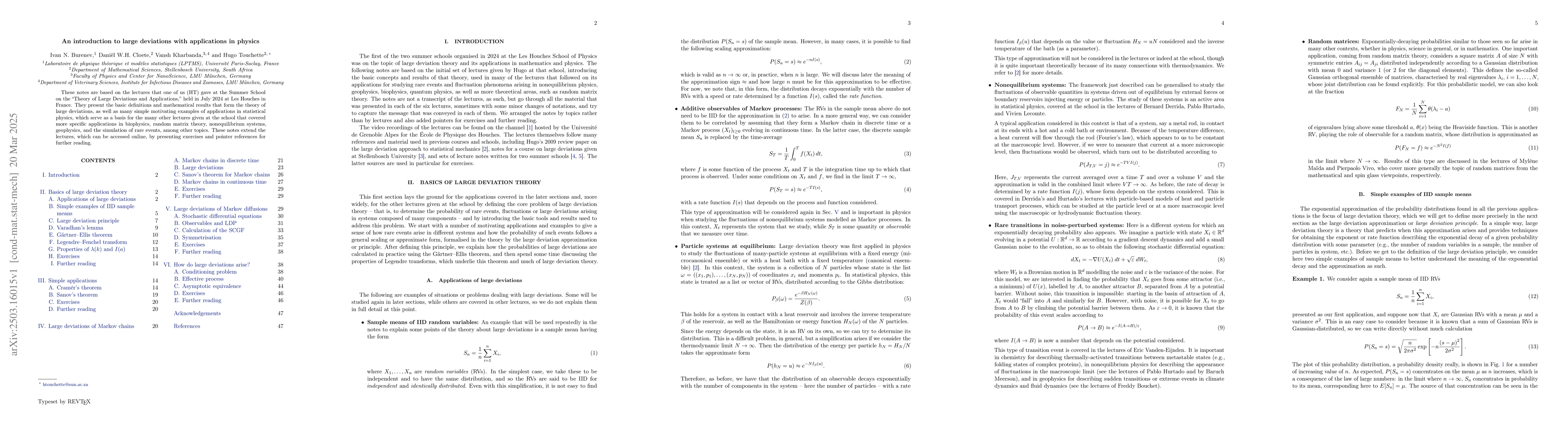 The paper contributes by consolidating the theory of large deviations, presenting it in an accessible format through lecture notes, and demonstrating its application to various physical systems, including Markov chains and beyond.