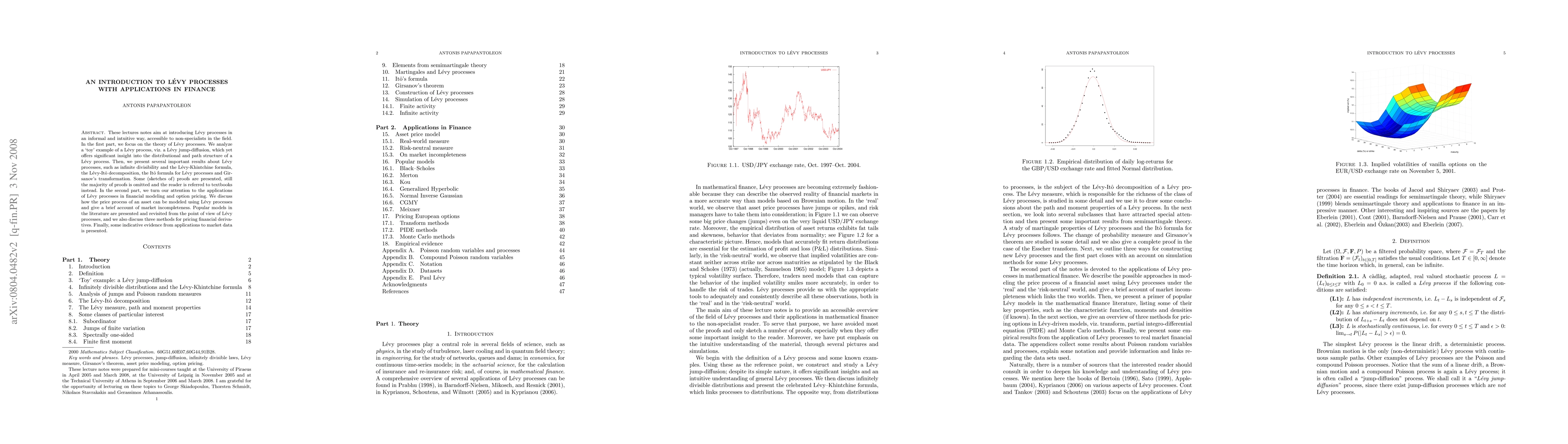 This paper introduces Lévy processes in an accessible manner, focusing on theory and applications in finance. It covers fundamental concepts and results, including infinite divisibility and the Lévy-Khintchine formula, and applies these to financial modeling and option pricing, discussing market incompleteness and derivative pricing methods.