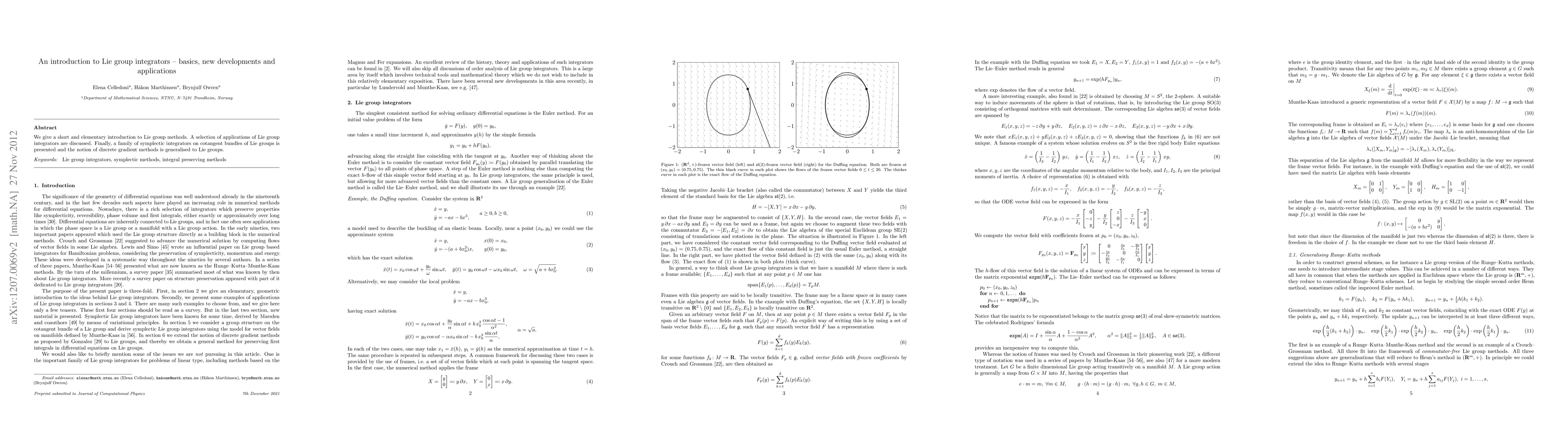 We give a short and elementary introduction to Lie group methods. A selection of applications of Lie group integrators are discussed. Finally, a family of symplectic integrators on cotangent bundles of Lie groups is presented and the notion of discrete gradient methods is generalised to Lie groups.