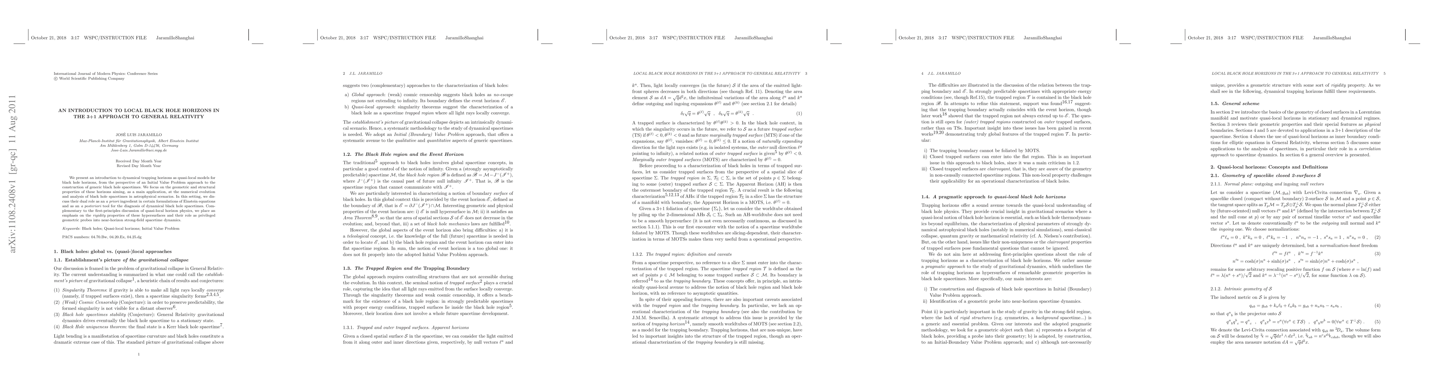 This paper introduces dynamical trapping horizons as quasi-local models for black hole horizons within the 3+1 approach to General Relativity, focusing on their geometric and structural properties for numerical evolution in astrophysical scenarios. It highlights their dual role in Einstein's equations and as diagnostic tools for dynamical black hole spacetimes.