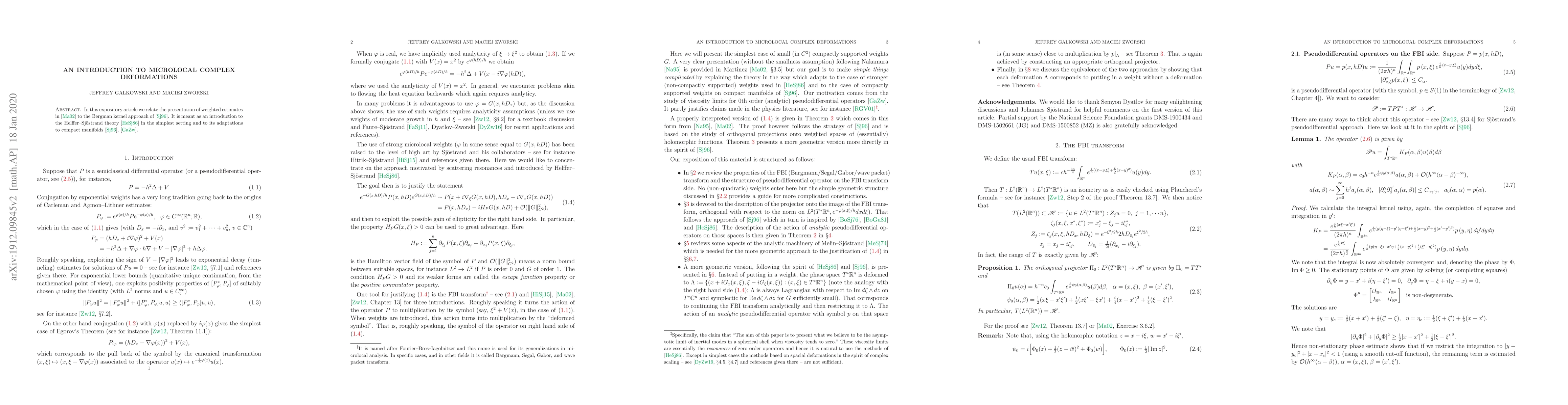 In this expository article we relate the presentation of weighted estimates in the book of Martinez to the Bergman kernel approach of Sj\"ostrand. It is meant as an introduction to the Helffer--Sj\"ostrand theory (designed for the study of quantum resonances) in the simplest setting and to its adaptations to compact manifolds.