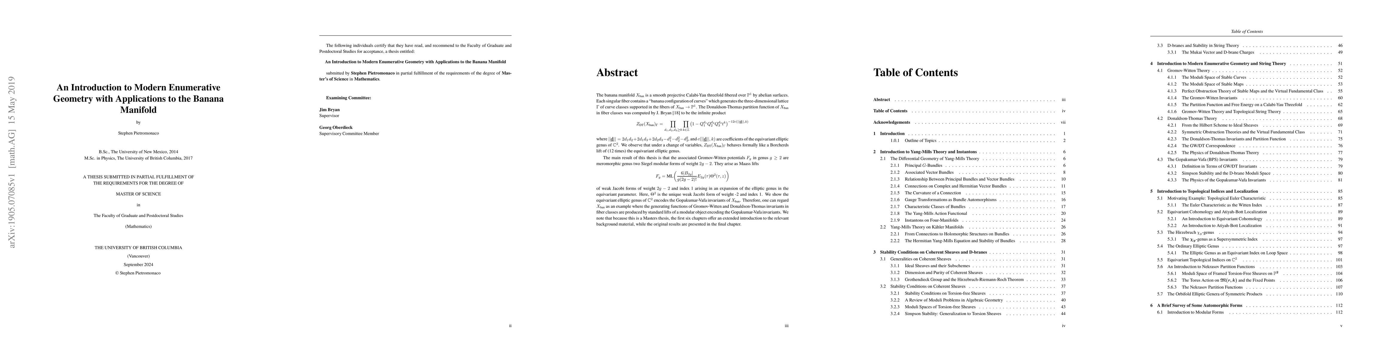 The banana manifold $X_{\text{ban}}$ is a smooth projective Calabi-Yau threefold fibered over $\mathbb{P}^{1}$ by abelian surfaces. Each singular fiber contains a "banana configuration of curves" which generates the rank-three lattice $\Gamma$ of curve classes supported in the fibers of $X_{\text{ban}}\to\mathbb{P}^{1}$. The Donaldson-Thomas partition function of $X_{\text{ban}}$ in fiber classes was computed by J. Bryan (arXiv:1902.08695) to be the infinite product \[Z_{\text{DT}}(X_{\text{ban}})_{\Gamma}= \prod_{d_{1},d_{2},d_{3}\geq0}\prod_{k\in\mathbb{Z}}\big(1-Q_{1}^{d_{1}}Q_{2}^{d_{2}}Q_{3}^{d_{3}}t^{k}\big)^{-12c(||\underline{\bf{d}}||,k)}\] where $||\underline{\bf{d}}||=2d_{1}d_{2}+2d_{1}d_{3}+2d_{2}d_{3}-d_{1}^{2}-d_{2}^{2}-d_{3}^{2}$, and $c(||\underline{\bf{d}}||,k)$ are coefficients of the equivariant elliptic genus of $\mathbb{C}^{2}$. We observe that under a change of variables, $Z_{\text{DT}}(X_{\text{ban}})_{\Gamma}$ behaves formally like a Borcherds lift of the equivariant elliptic genus. The main result of this thesis is that the associated Gromov-Witten potentials $F_{g}$ in genus $g\geq2$ are meromorphic genus two Siegel modular forms of weight $2g-2$. They arise as Maass lifts of weak Jacobi forms of weight $2g-2$ and index 1 arising in an expansion of the elliptic genus in the equivariant parameter. We show the equivariant elliptic genus of $\mathbb{C}^{2}$ encodes the Gopakumar-Vafa invariants of $X_{\text{ban}}$. Therefore, one can regard $X_{\text{ban}}$ as an example where the generating functions of Gromov-Witten and Donaldson-Thomas invariants in fiber classes are produced by standard lifts of a modular object encoding the Gopakumar-Vafa invariants. We note that because this is a Masters thesis, the first six chapters offer an extended introduction to the relevant background material, while the original results are presented in the final chapter.