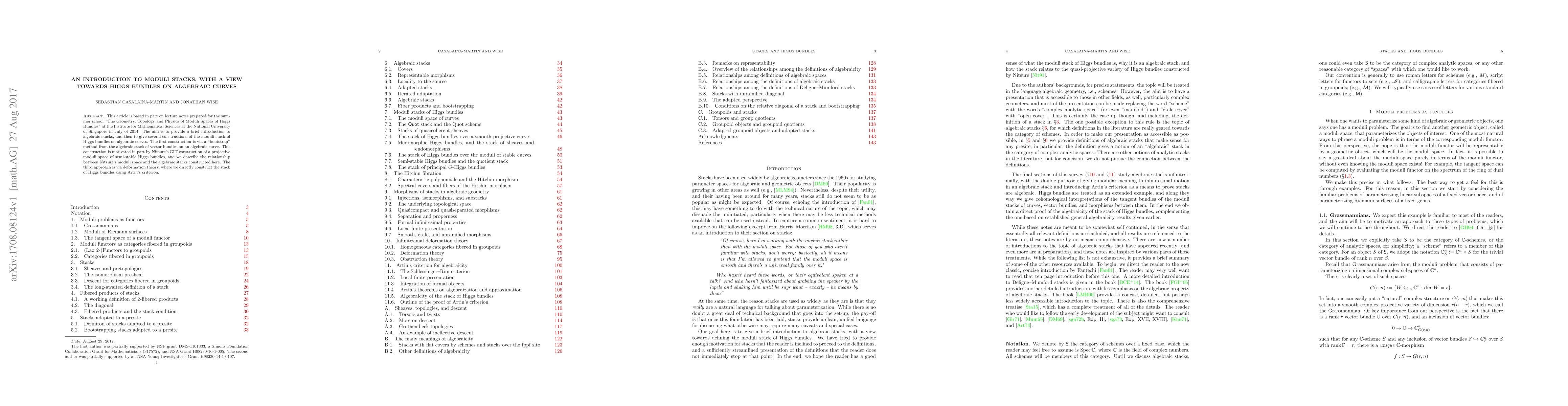 This paper introduces algebraic stacks and constructs the moduli stack of Higgs bundles on algebraic curves through a "bootstrap" method, Nitsure's GIT construction, and via deformation theory using Artin's criterion.