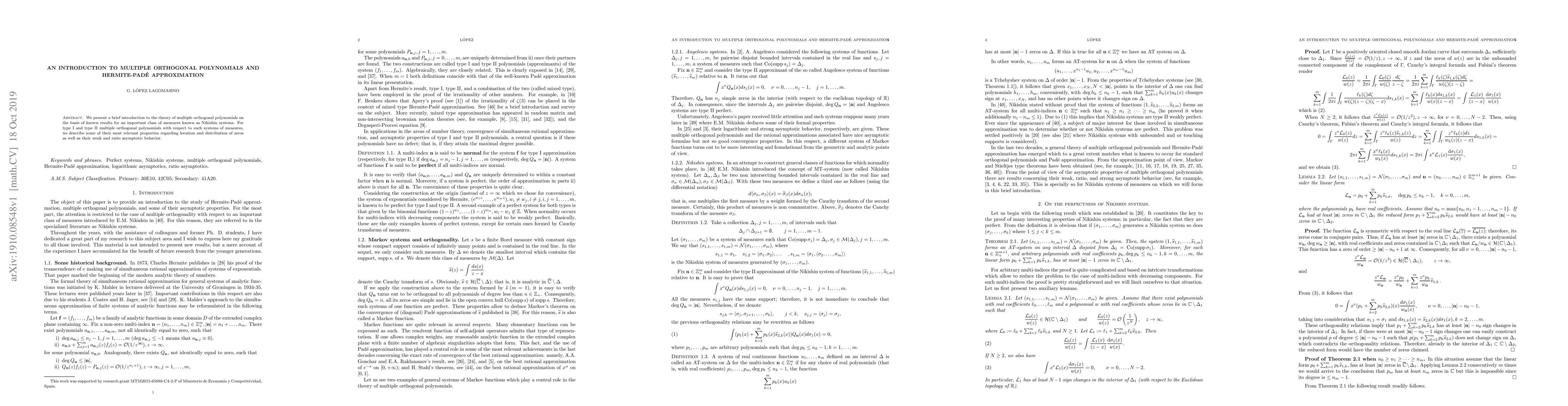 This paper introduces multiple orthogonal polynomials based on Nikishin systems, discussing their properties, zero distribution, and asymptotic behavior, with a focus on Hermite-Padé approximation techniques.