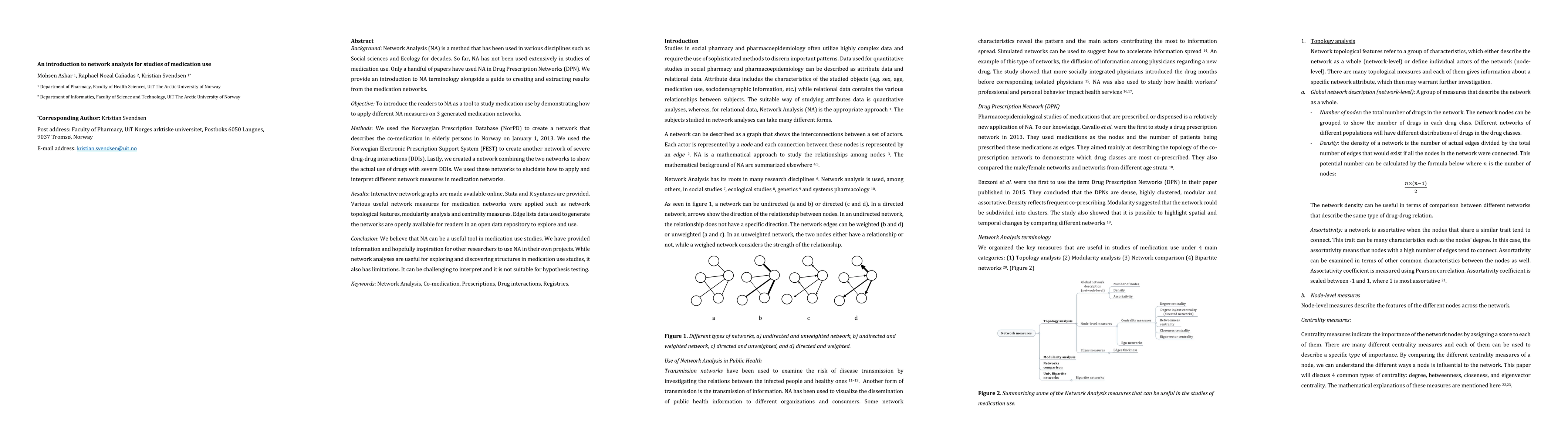 The authors provide a guide to network analysis terminology and measures, highlighting its potential in medication studies while noting limitations and the need for further research.